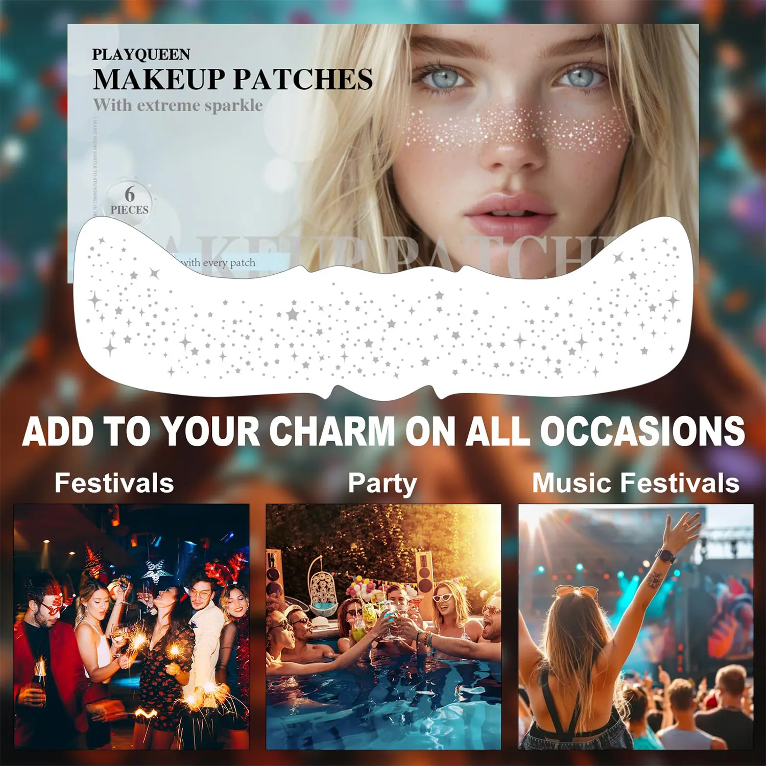·EXCELLENT QUALITY - Our glitter speckle patches are made with attention to detail and quality. These glitter make up patches are gentle for all skin types because they are made of high-quality materials. With our glitter makeup patches, say goodbye to concerns about skin reactions and hello to gorgeous, glowing skin.
