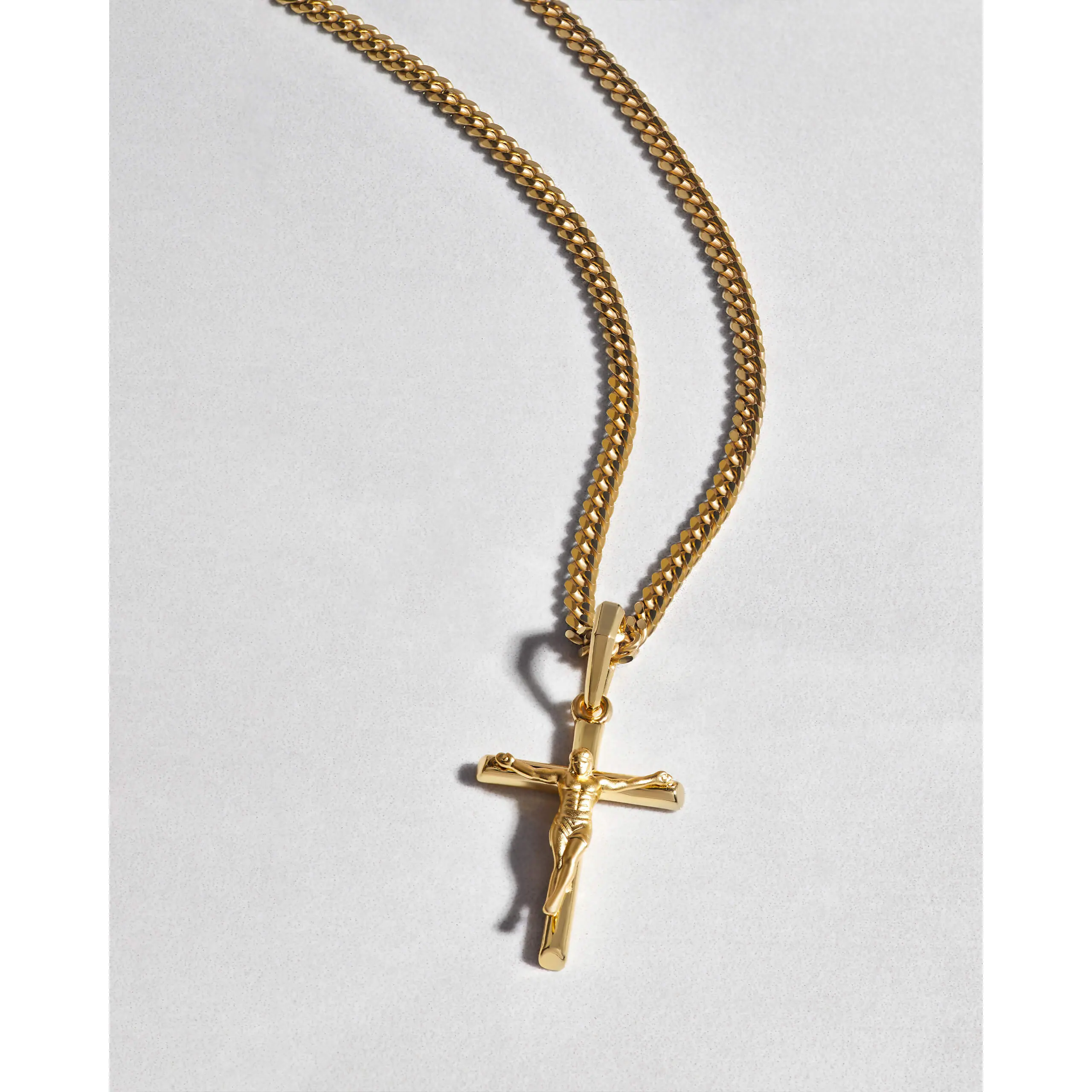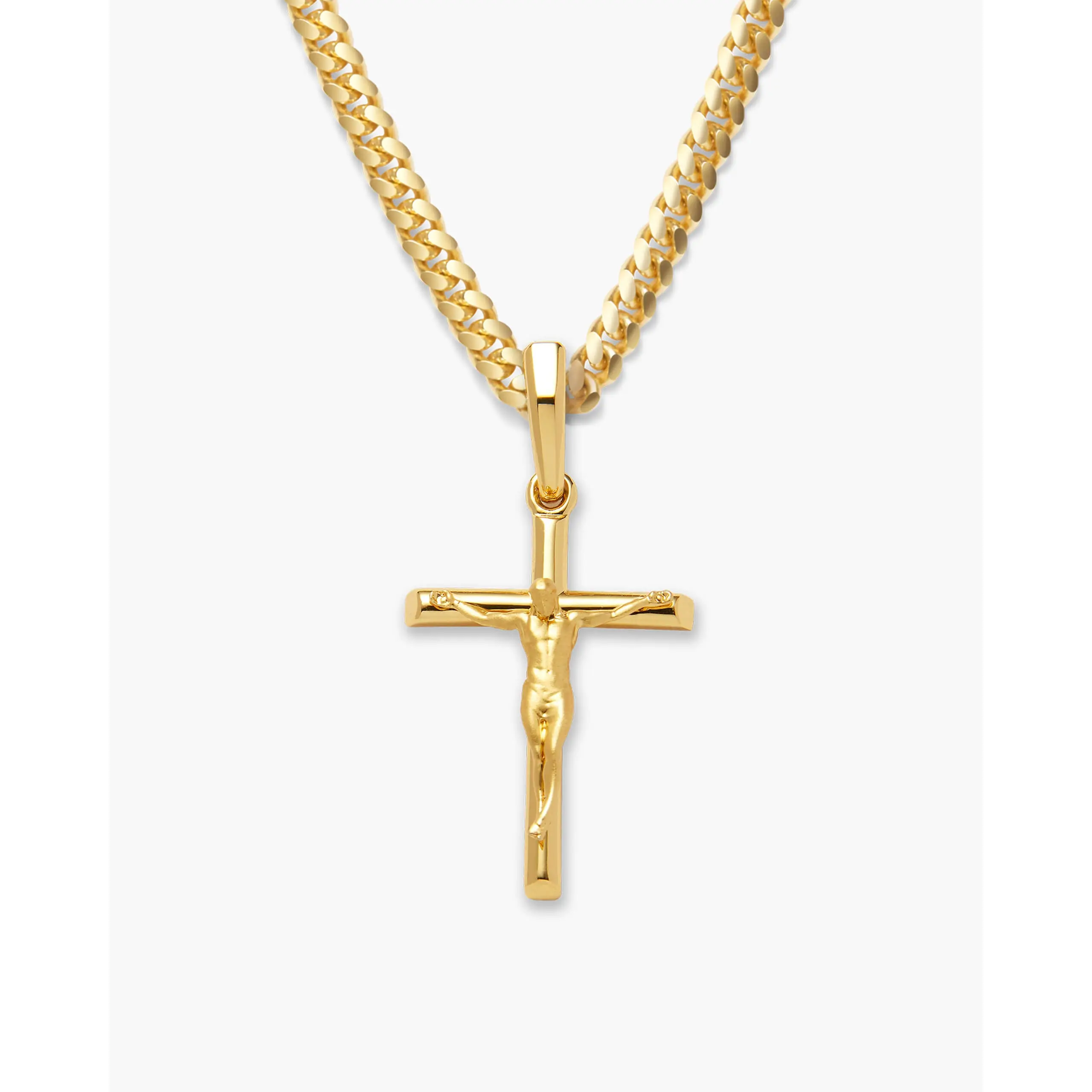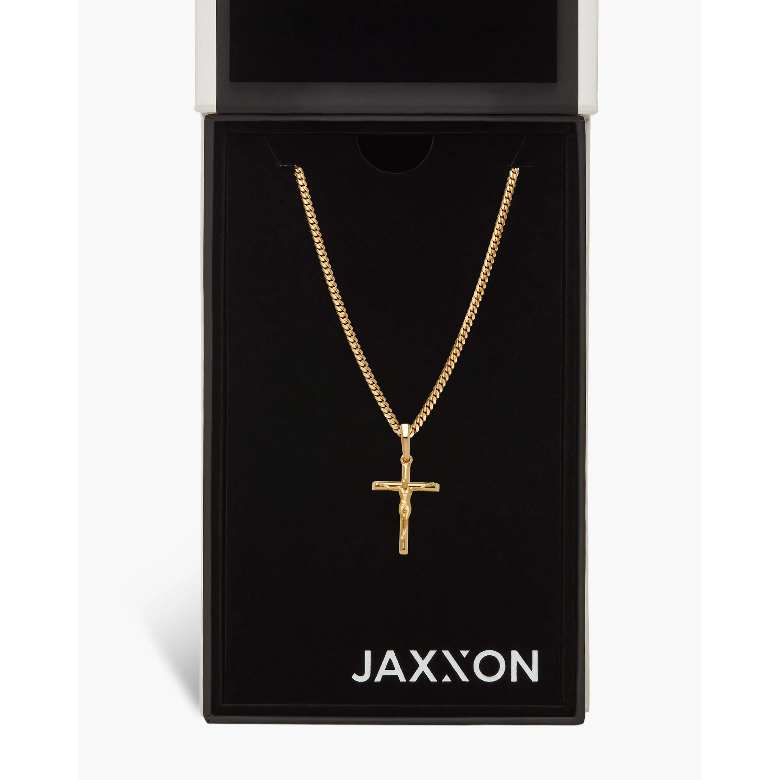 Choose the pendant that best expresses your faith. The yellow gold Crucifix Pendant is one of the newest additions to our men’s pendant collection and a best-seller. We’ve crafted this gold crucifix pendant with the best gold jewelry materials to create a standout shine and be comfortable as it remains close to your heart. Pair this 14k yellow gold-finished men’s crucifix pendant with a JAXXON gold chain to build your own gold crucifix necklace—an accessory you’ll never want to take off. Showcase your faith and add this gold crucifix necklace to your gold jewelry collection today.