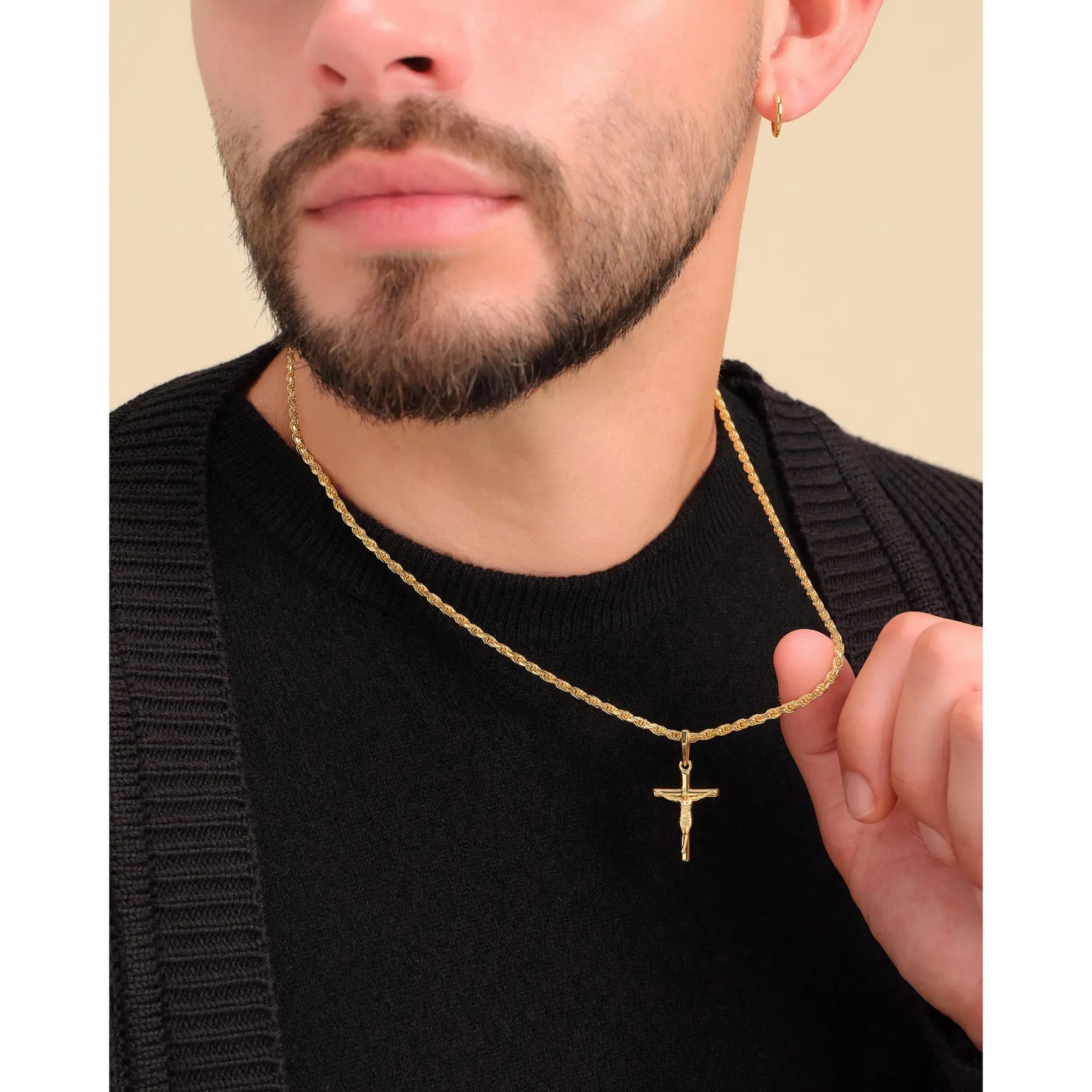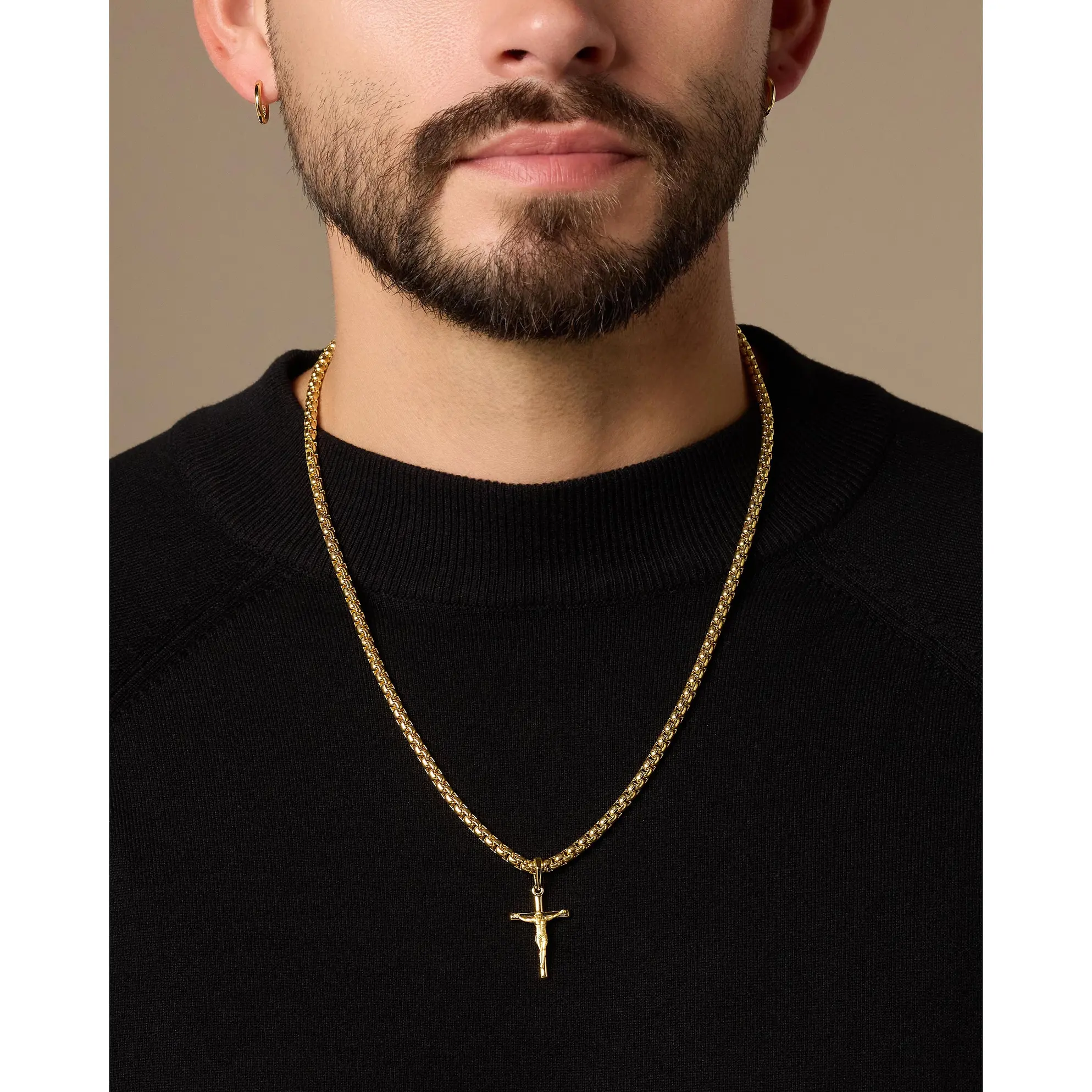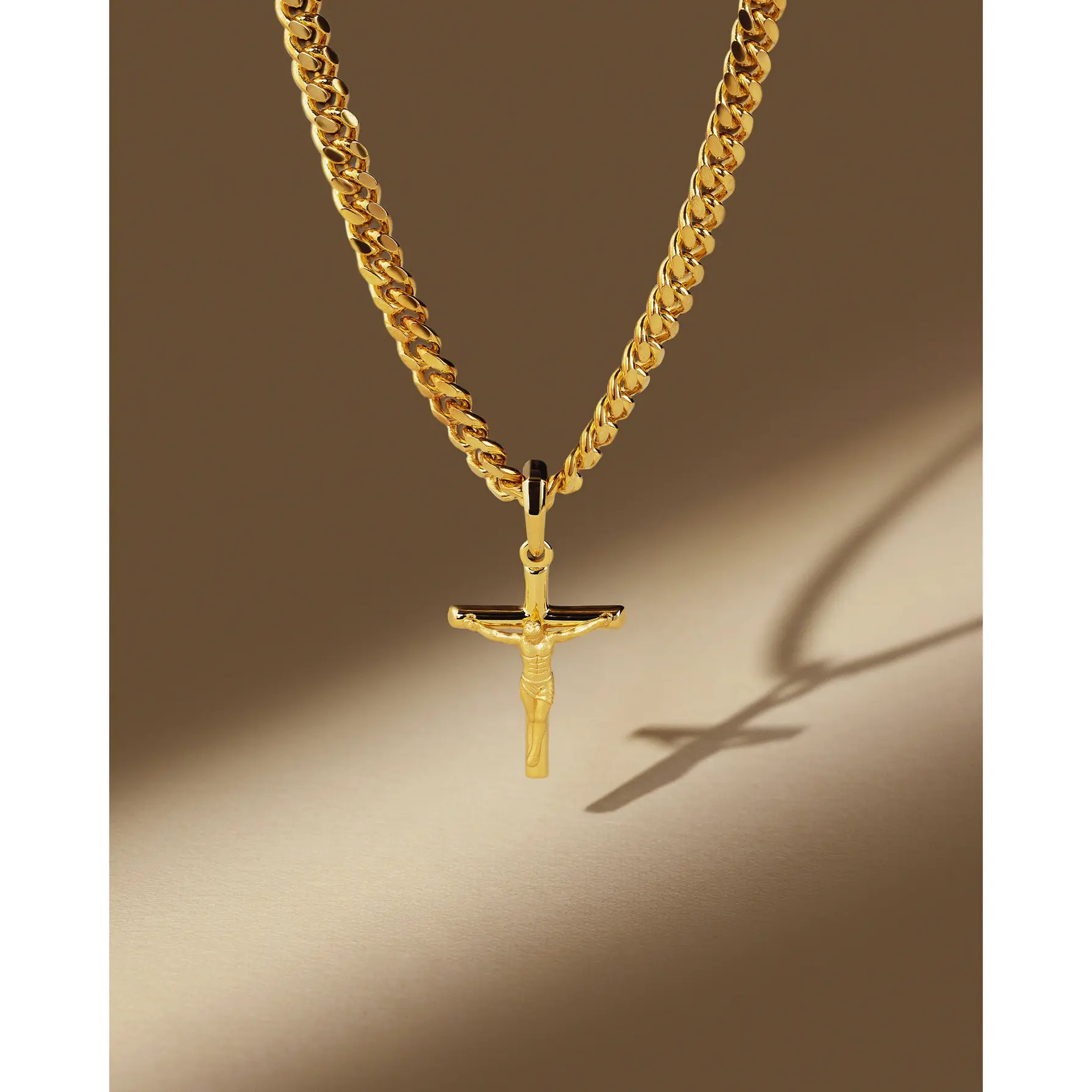 Choose the pendant that best expresses your faith. The yellow gold Crucifix Pendant is one of the newest additions to our men’s pendant collection and a best-seller. We’ve crafted this gold crucifix pendant with the best gold jewelry materials to create a standout shine and be comfortable as it remains close to your heart. Pair this 14k yellow gold-finished men’s crucifix pendant with a JAXXON gold chain to build your own gold crucifix necklace—an accessory you’ll never want to take off. Showcase your faith and add this gold crucifix necklace to your gold jewelry collection today.