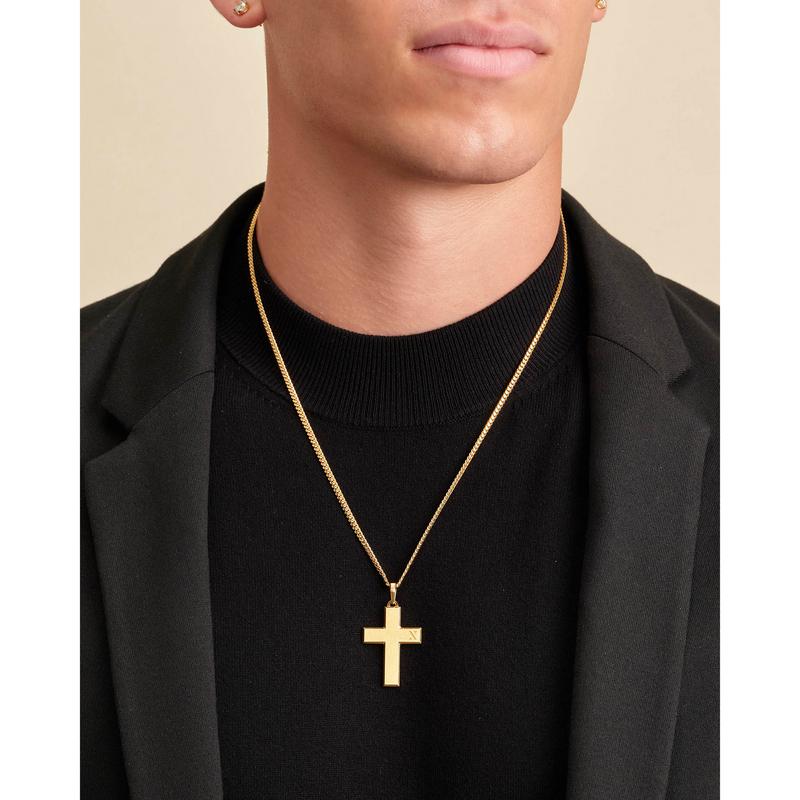The gold Mosaic Cross Pendant is a timeless classic. It is an essential accessory for men expanding their yellow gold jewelry collection. The pendant features sleek, angled edges and a fine brush finish. With this best-selling gold cross pendant necklace, getting dressed and showcasing your faith has never been easier.