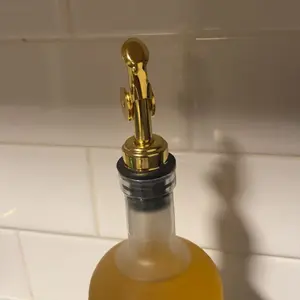 Gold color pour spout for the limited edition roasted garlic oil. Perfect for controlled drizzling.
