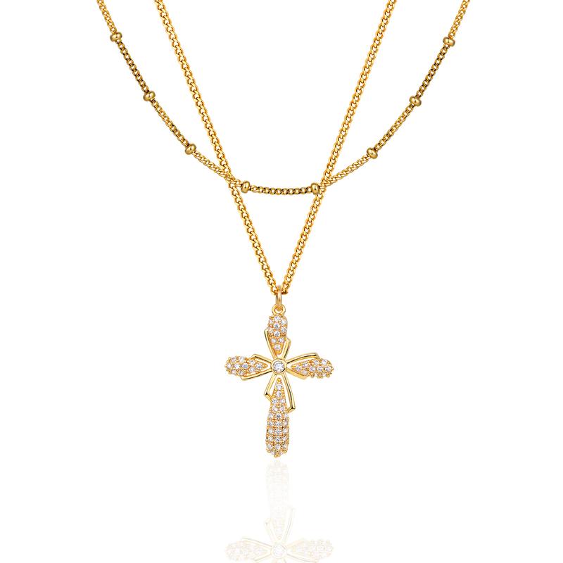 5. Fettero Gold Cross Necklace for Women Dainty CZ Cross Pendant Necklaces Simple Faith Christian Jewelry Gifts for Girls