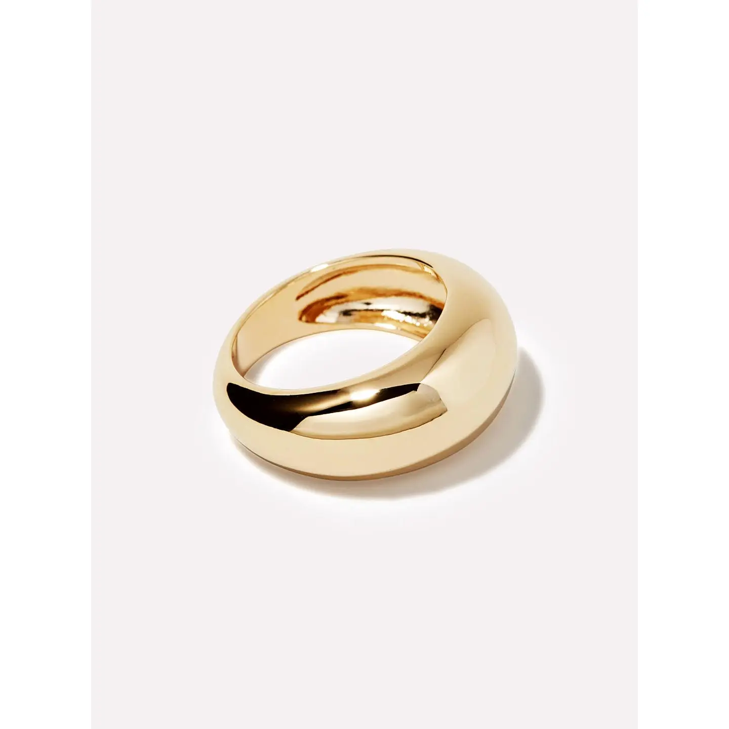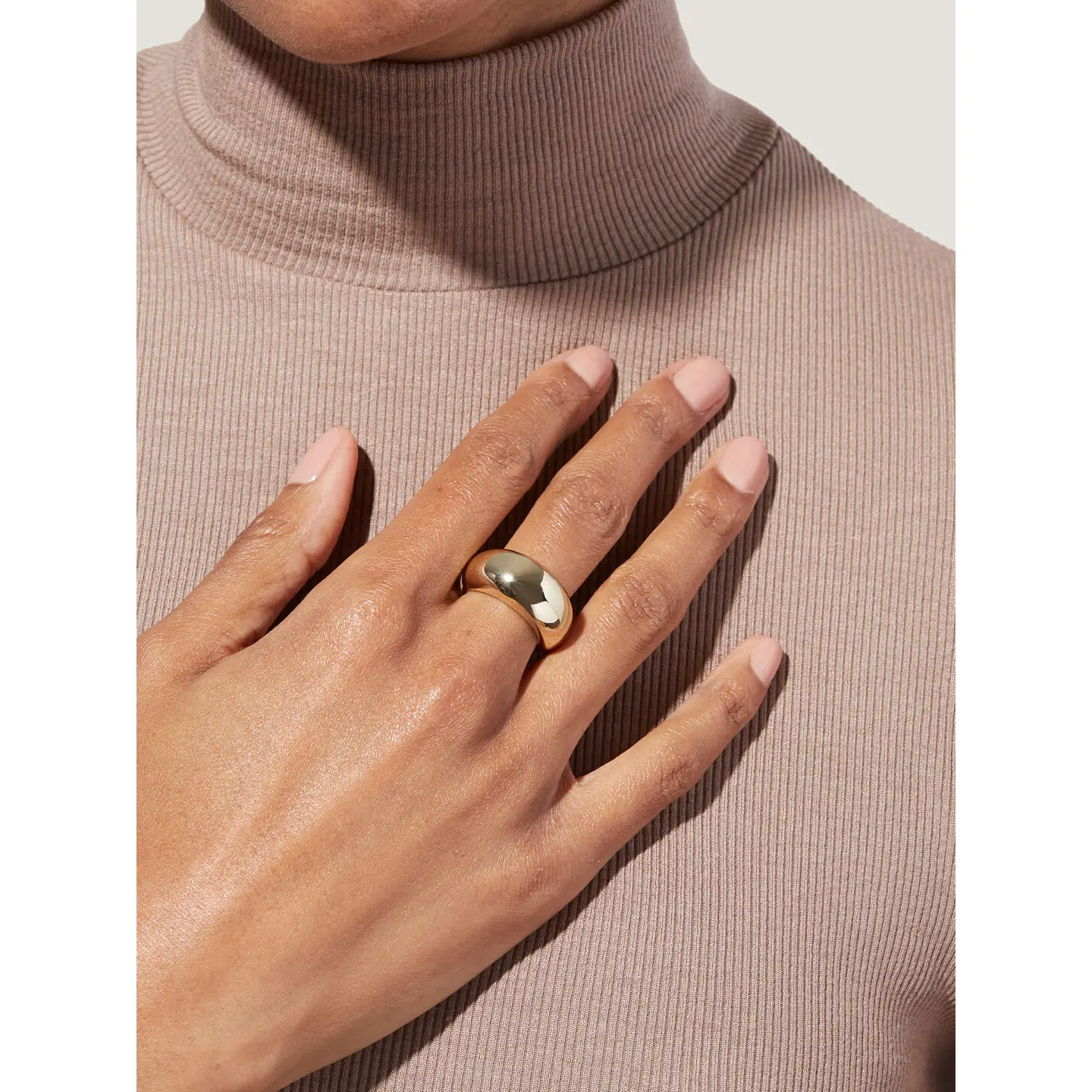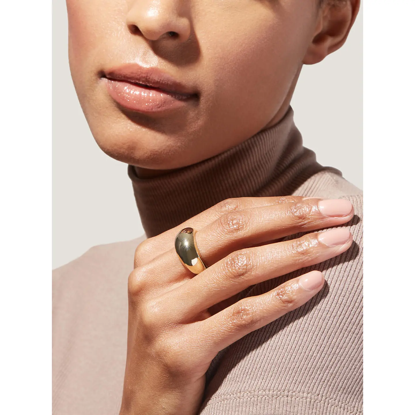 This high-polish gold dome ring with a vintage gold color is the secret ingredient to a contemporary & chic outfit. A cocktail ring that will never go out of style, this jewelry piece is simple enough to accessorize easily but creative enough to make your look stand out. Dipped in 14k gold and crafted in a lustrous texture, this gold dome ring is the perfect jewelry accessory for any party.