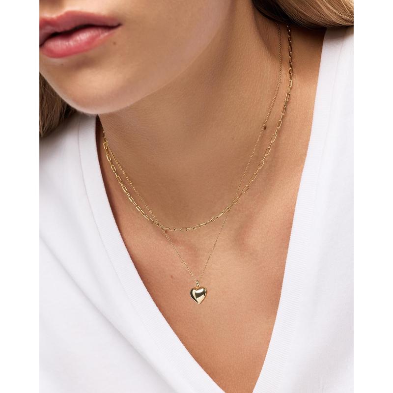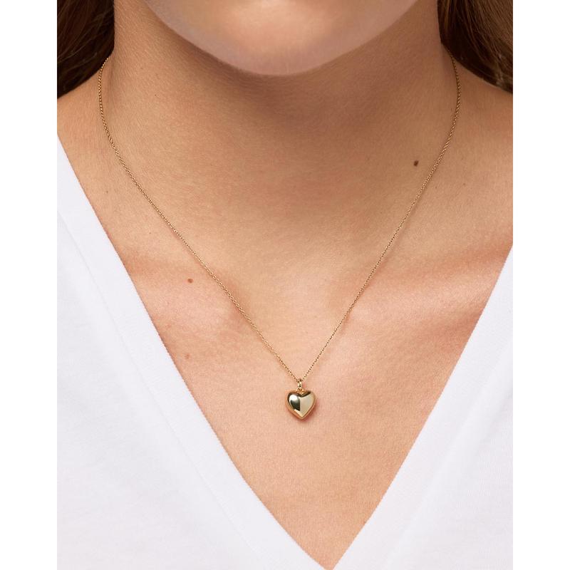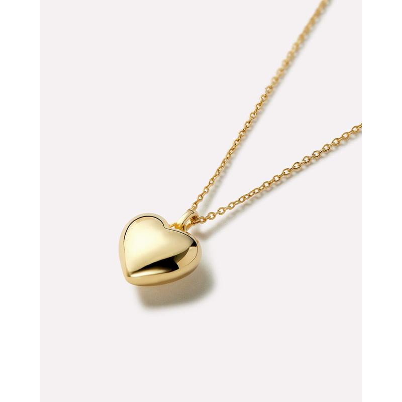 • Dipped in tarnish-proof 14k gold • High-shine polished finish • Puffy heart pendant