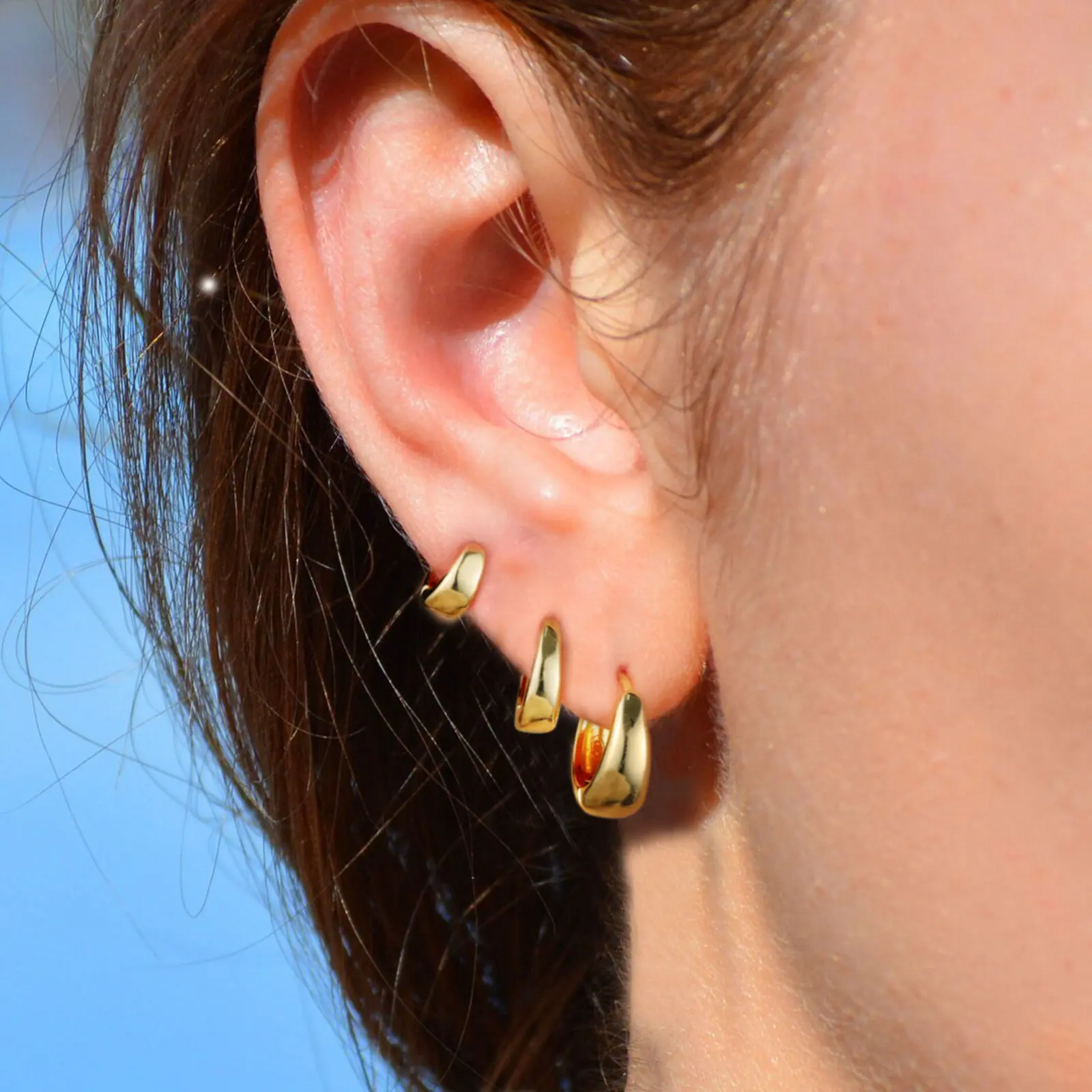 Hypoallergenic 18k real yellow gold plated chunky earrings for women, no lead or nickel, gentle to sensitive ear.
