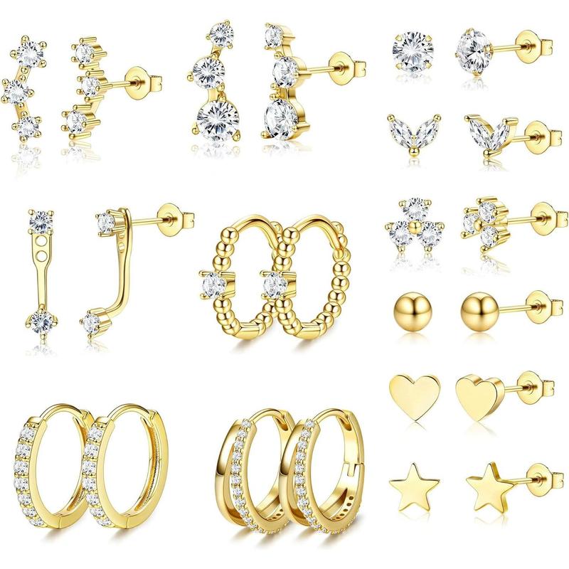5. ZELORES 11 Pairs Small Gold Hoop Earring Stacks for Women Trendy 14k Gold Plated Chunky Huggie Earrings Hypoallergenic Stainless Steel Cartilage Earrings Sets for Multiple Piercings