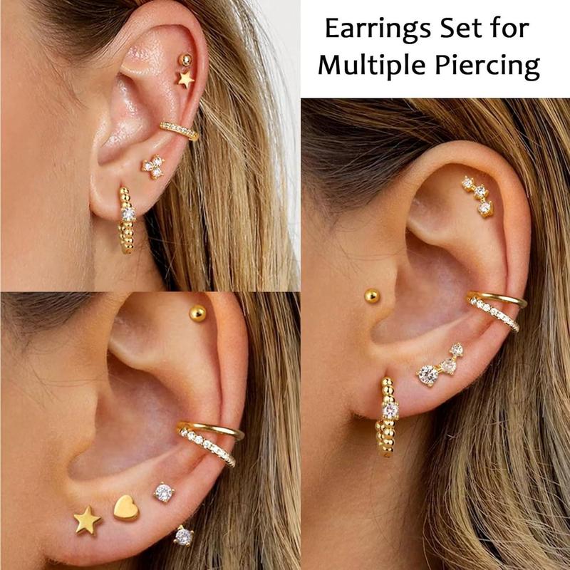 nickel free ear cuff gold jewelry set for daily wear and party and other important occasion. High polished surface allows the gold cartilage stud earrings stacks to maintain a good metallic luster for a long time.