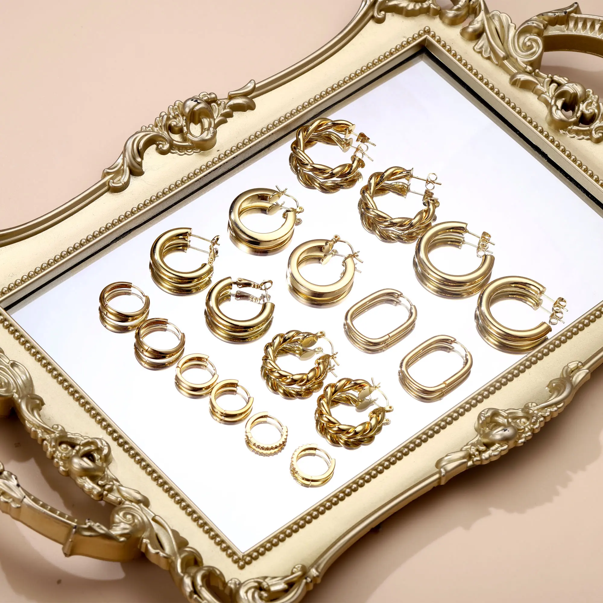 【Hypoallergenic】: Chunky gold hoop earrings are plated with high quality 14k gold, nickel free, lead free, and hypoallergenic. No tarnish, No irritation for sensitive ears.
