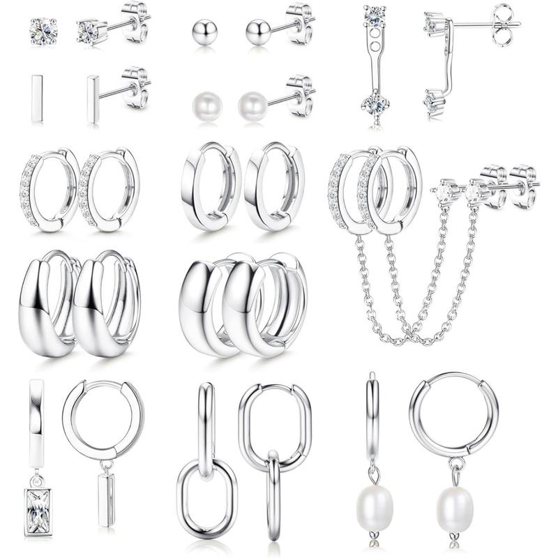 Stud Hoop Earrings: The earrings set comes with 13 pairs of different stud and huggie earrings, which is rich in styles, such as cz stud earrings, pearl dangle earrings, chunky earrings, chain earrings, it is the great ideal choice for various occasions and wearing needs.
