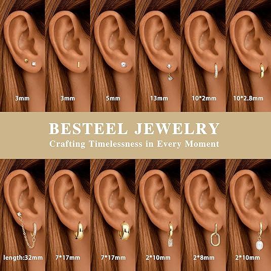 Earring Sets for Multiple Piercing: The Earring pack comes in a variety of sizes in diameter, which can be combined and matched to wear on different parts of the ear. With secure and secure top buckle and puncture design, it is easy to put on and take off, No burden on the ears.