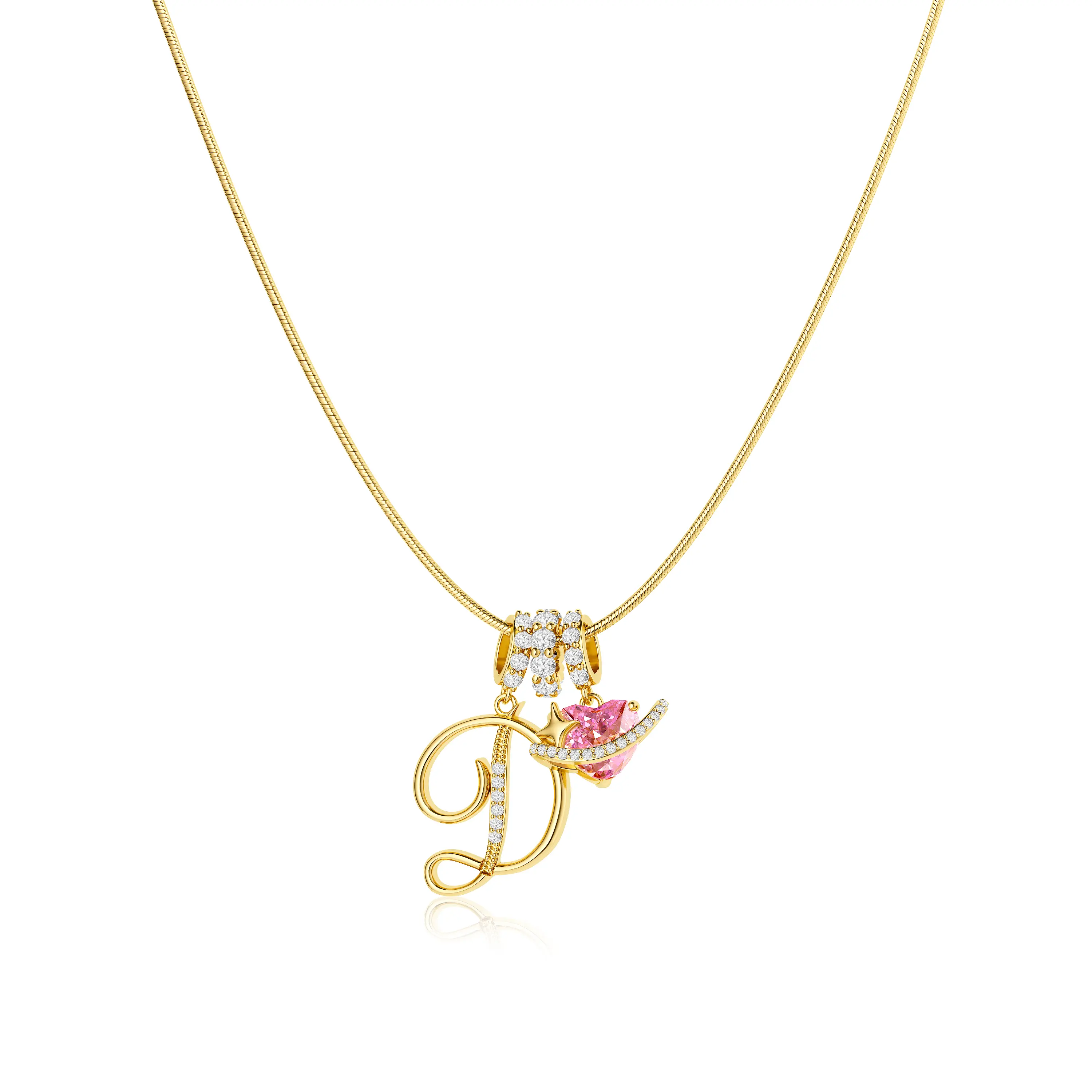 Wear a gold initial necklace to make a statement! Show off your first name, new last name, or alma mater. This classic piece allows you to express personal significance elegantly. Good luck to the wearer. It's perfect for expressing love and appreciation.