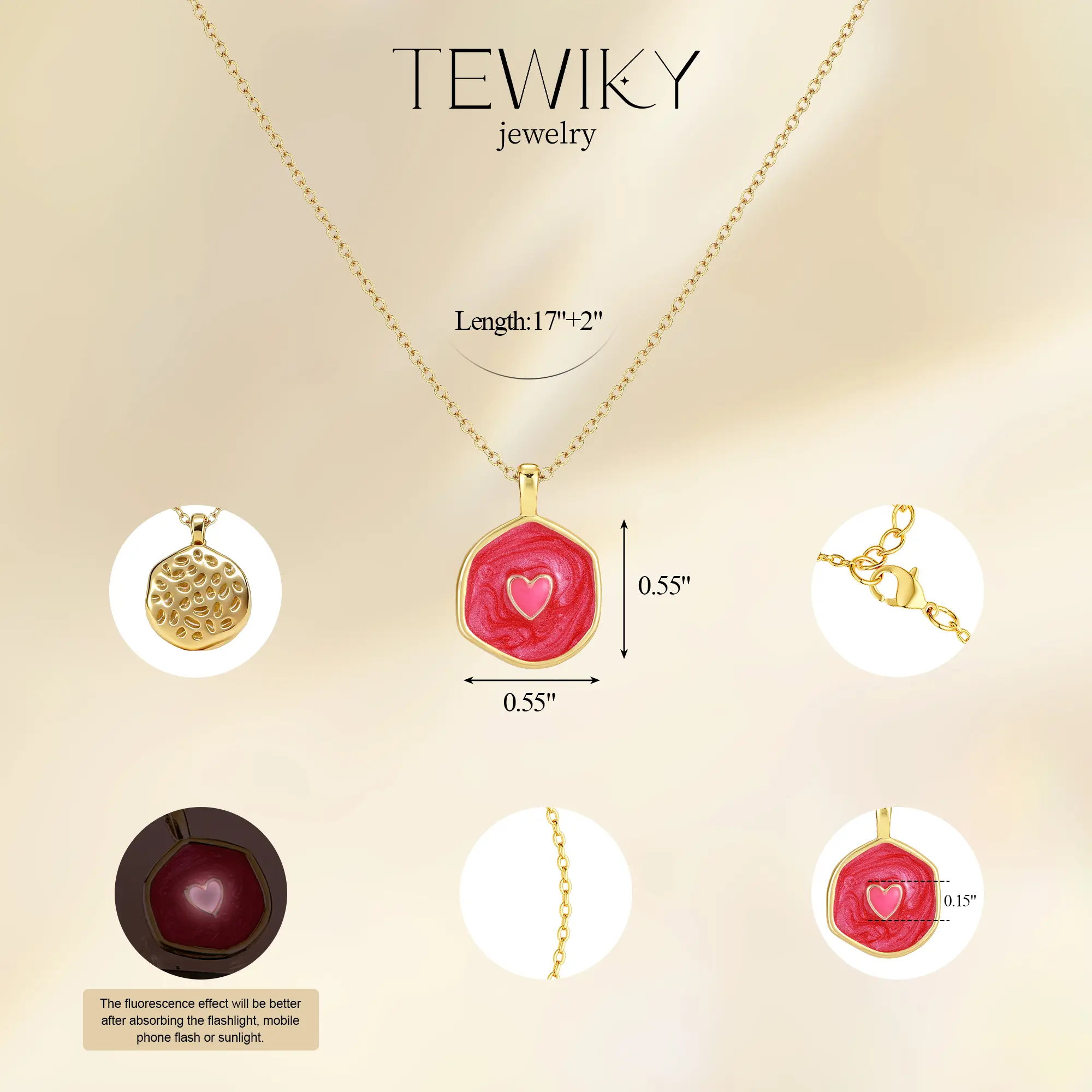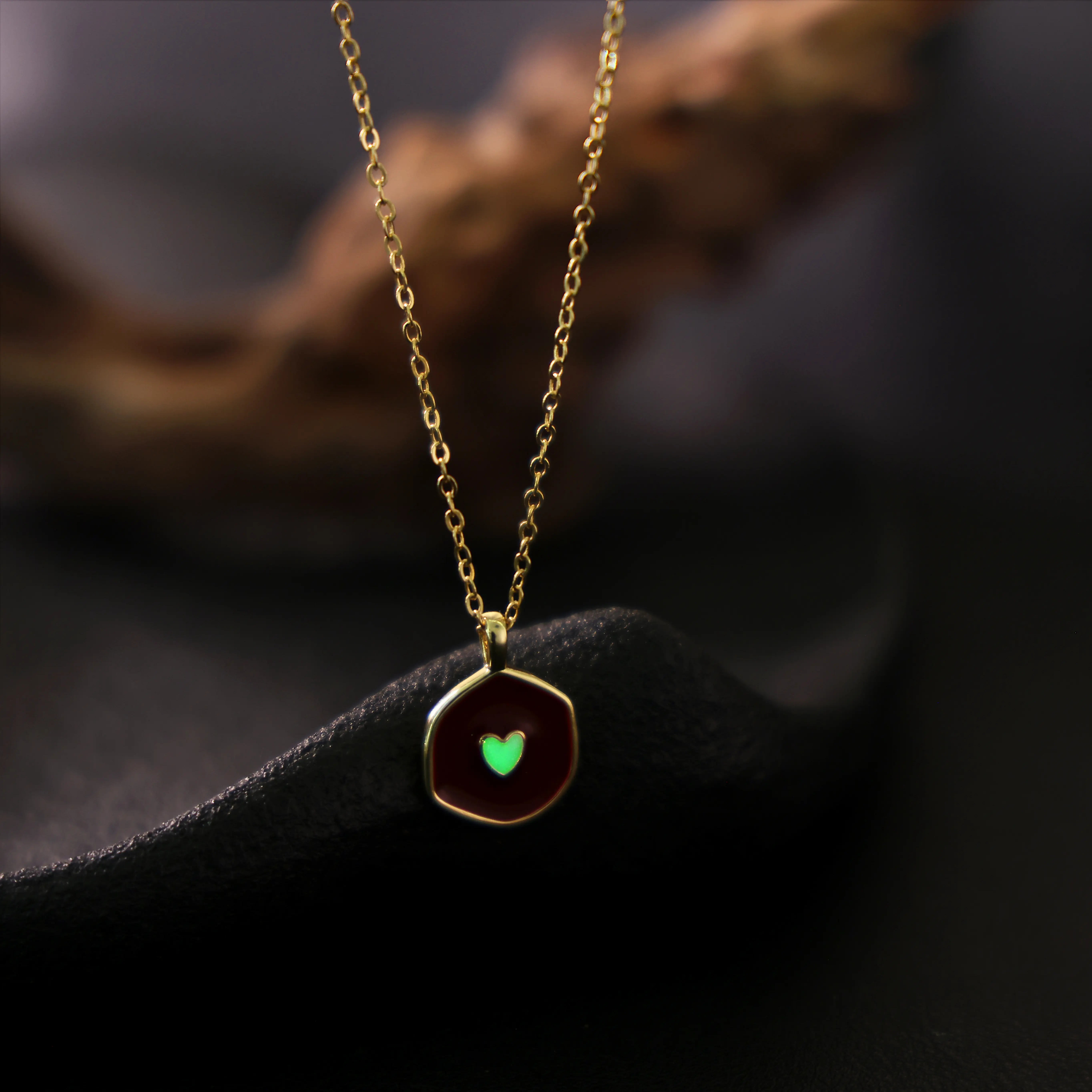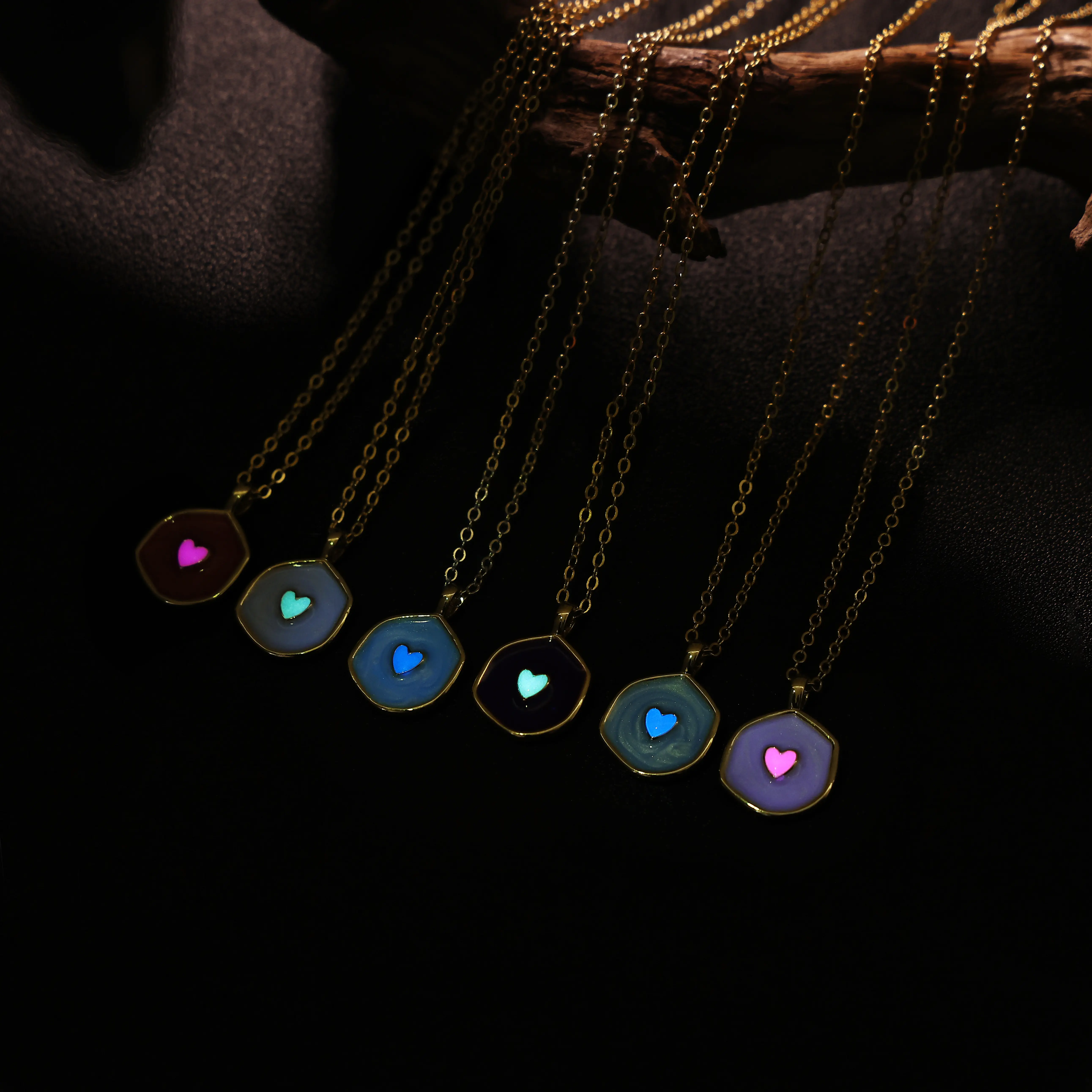 ·The dual-color fluorescent drip heart round pendant makes it stand out.