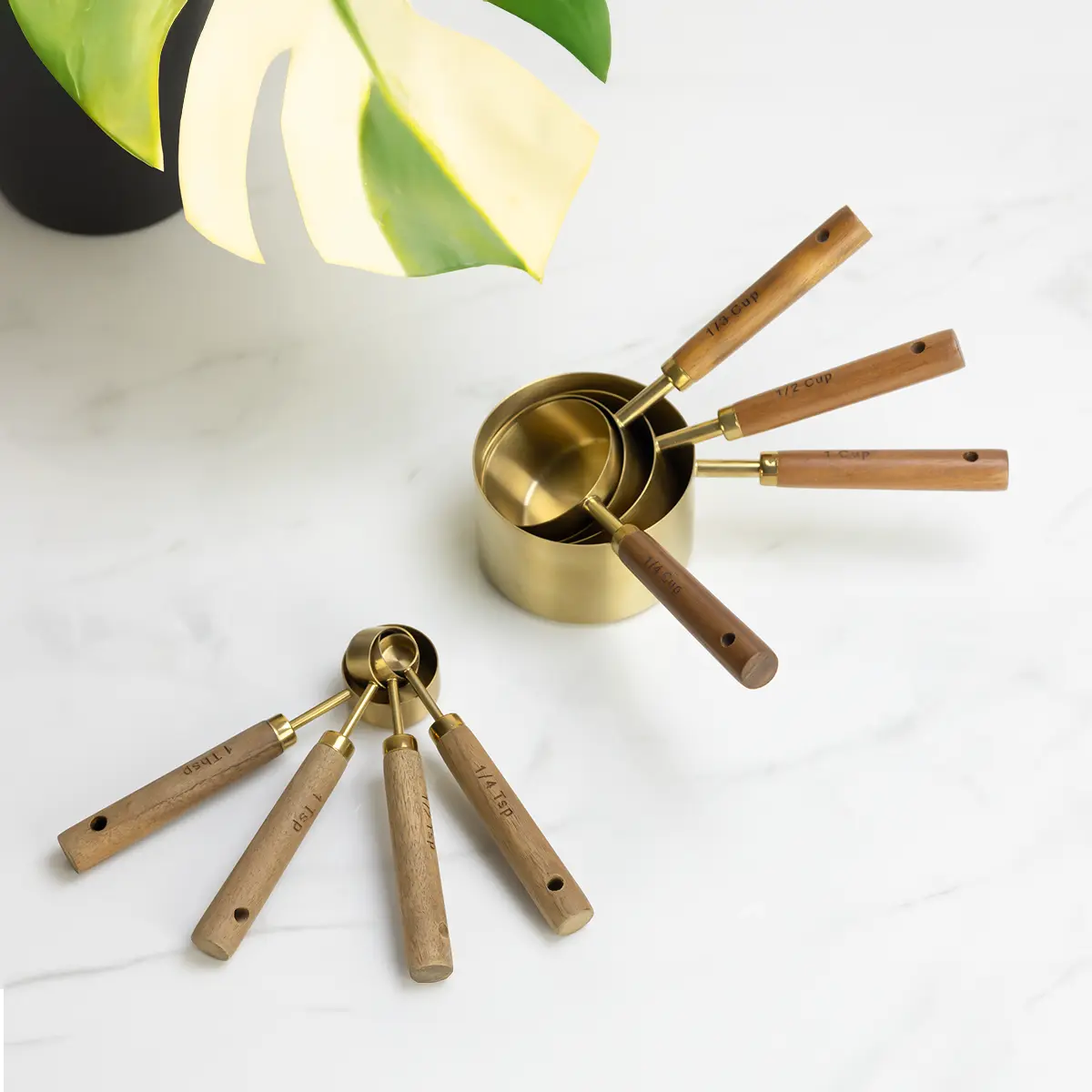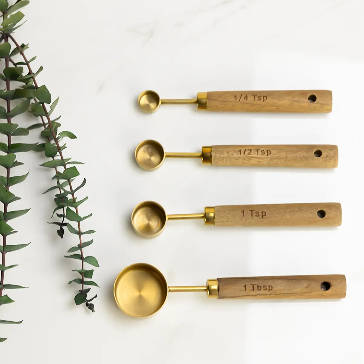 Everything Kitchens Modern Essentials Gold Measuring Spoons with Wood Handles (Set of 4) Features: