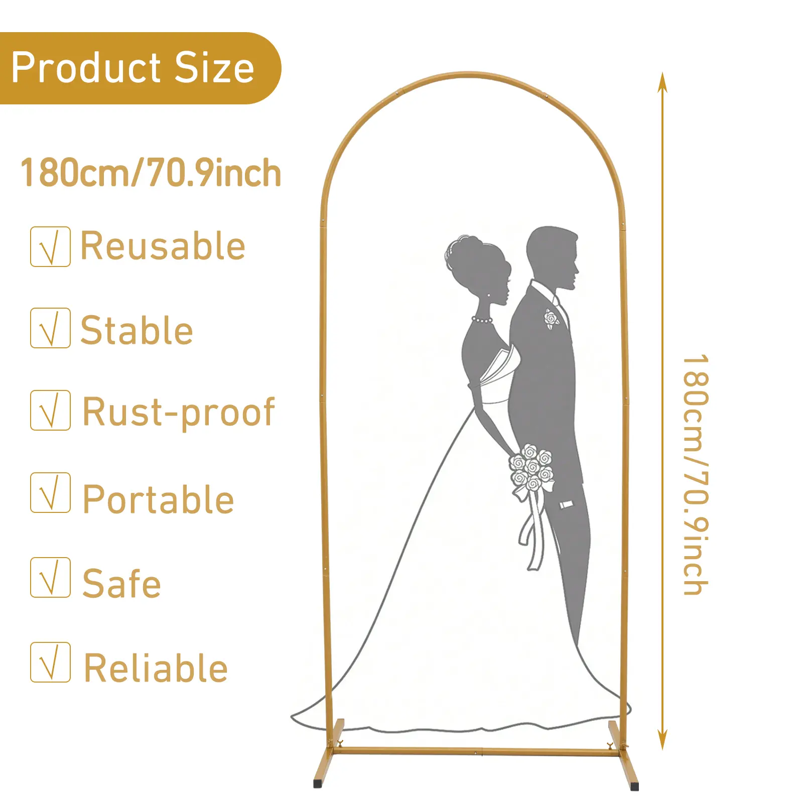 ·Arch Backdrop Stand Set:Our wedding arch set includes a 5.9×2.6FT,6.6×3.3FT metal arch backdrop stand, and the same size arch backdrop cover, the metal arch frame is in an elegant door shape, providing excellent background decoration for your event