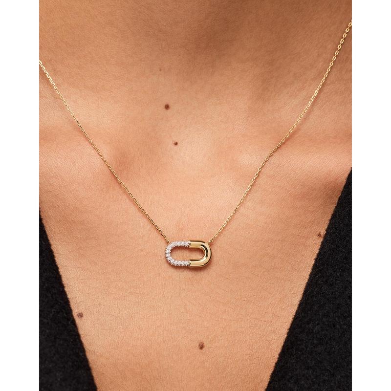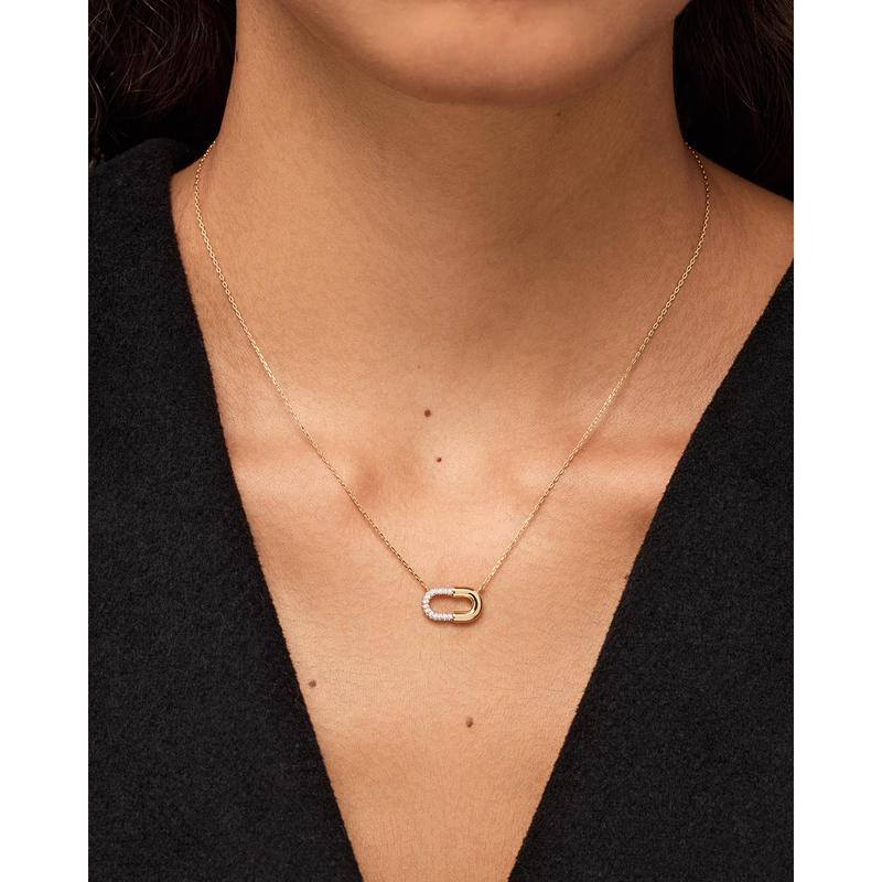 • Plated in 14k gold & rhodium • Pavé pendant necklace • Water-resistant & tarnishproof