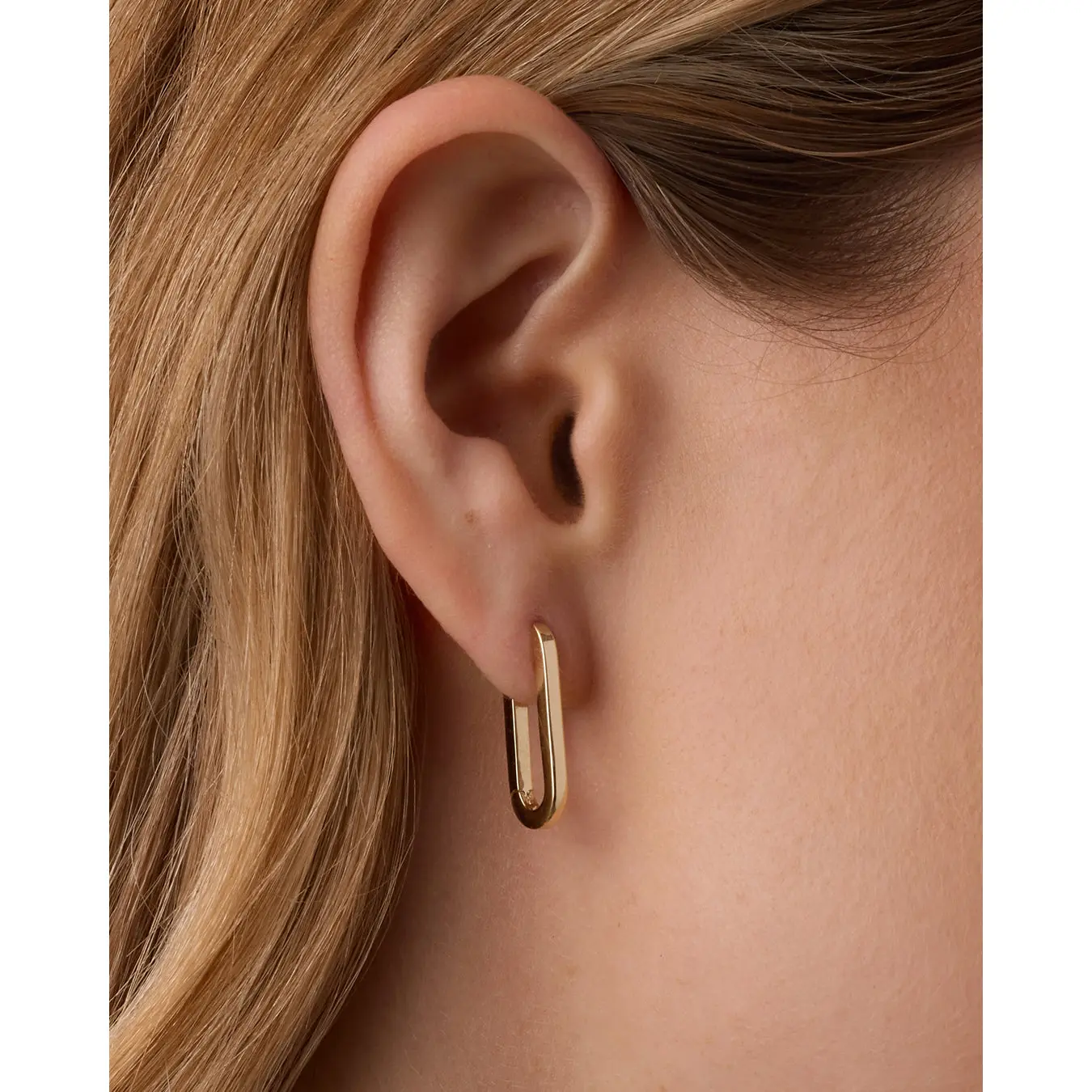 Parker Huggies – Sleek. Retro. Stackable. Add a fun twist to your ear stack with these elongated paperclip-inspired huggies. With their high-shine gold-plated finish and sleek silhouette, the Parker Huggies bring just the right amount of edge and elegance to any look. Whether you wear them solo or layered with your favorite studs and hoops, they’re an effortless upgrade. Why You’ll Love Them: Retro-Inspired Shape – Elongated design brings a modern, minimalist vibe to your jewelry lineup. Perfect for Stacking – Designed to shine in first piercings or mix-and-matched in a full stack. Comfort Closure – Surgical steel post and hinge closure for secure, easy wear. High-Shine Finish – 18k gold or silver-plated brass offers lasting luster. Great Gift Idea – A sleek, stylish pick for yourself or someone special. Specifications: Drop: approx. 7/8" Surgical steel post Hinge closure Available in 18k gold-plated or silver-plated brass Care Tip: Keep your huggies shining bright—store them dry and avoid contact with alcohol-based products. Style the Parker Huggies your way—for everyday cool with a touch of glam.