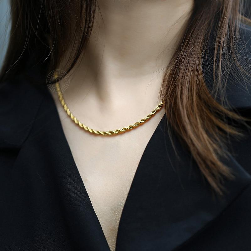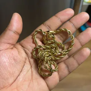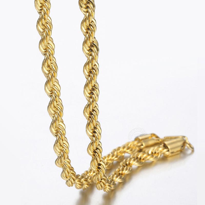 This is for either a 3mm, 5mm, 7mm Gold Color Rope chain necklaces from 16 inches to 30 inches. Stainless Steel will not tarnish nor discolor easily.