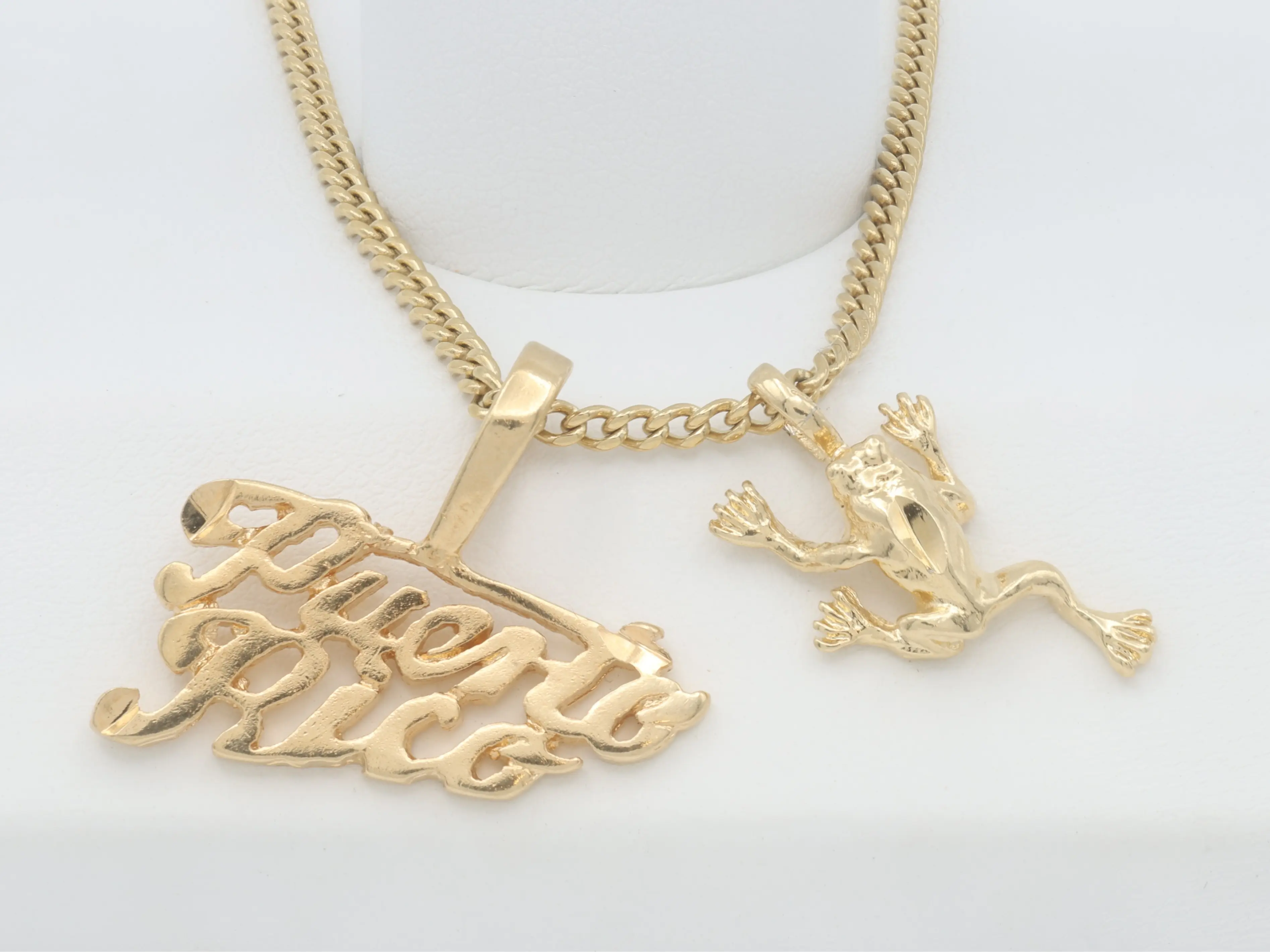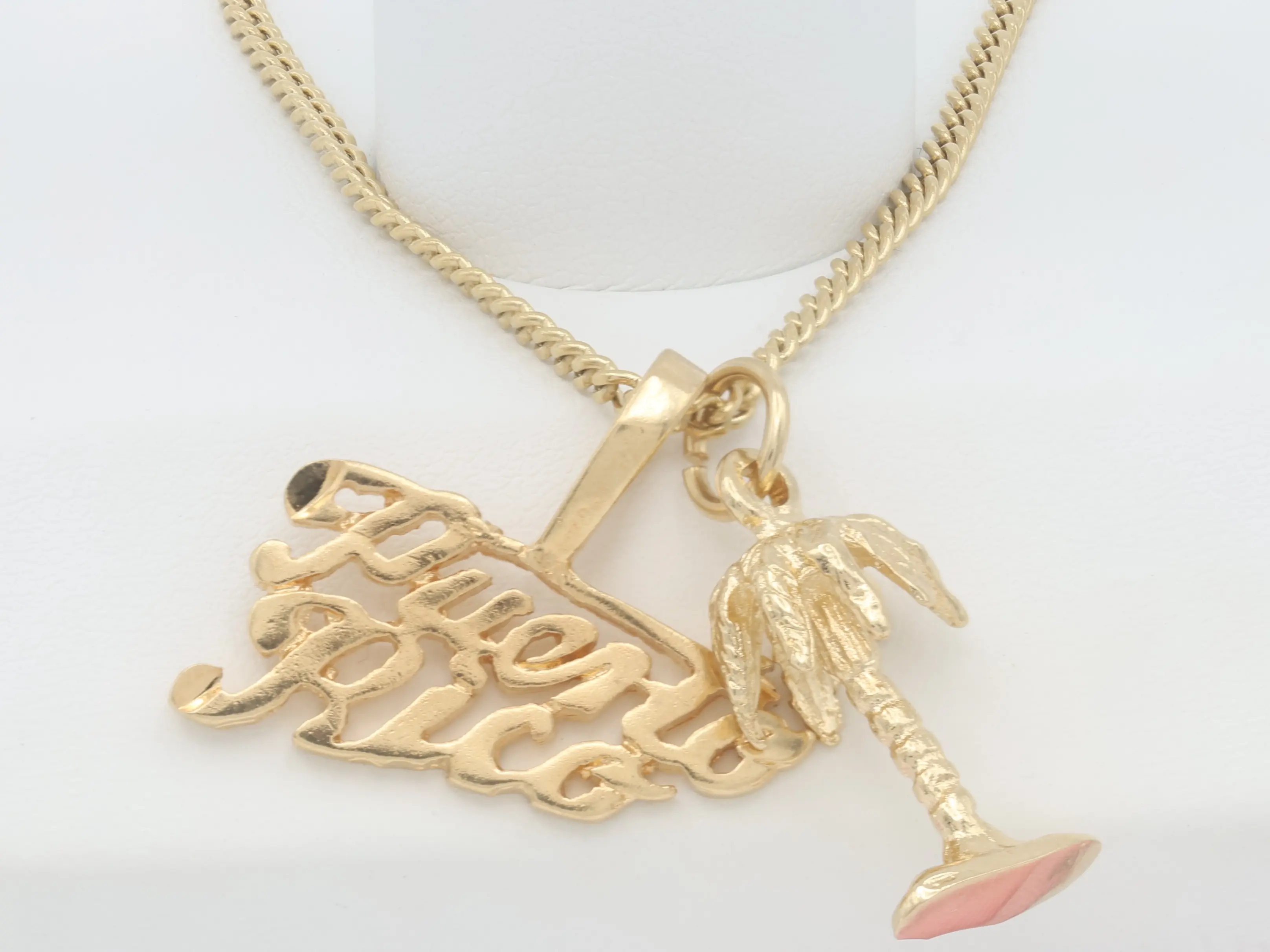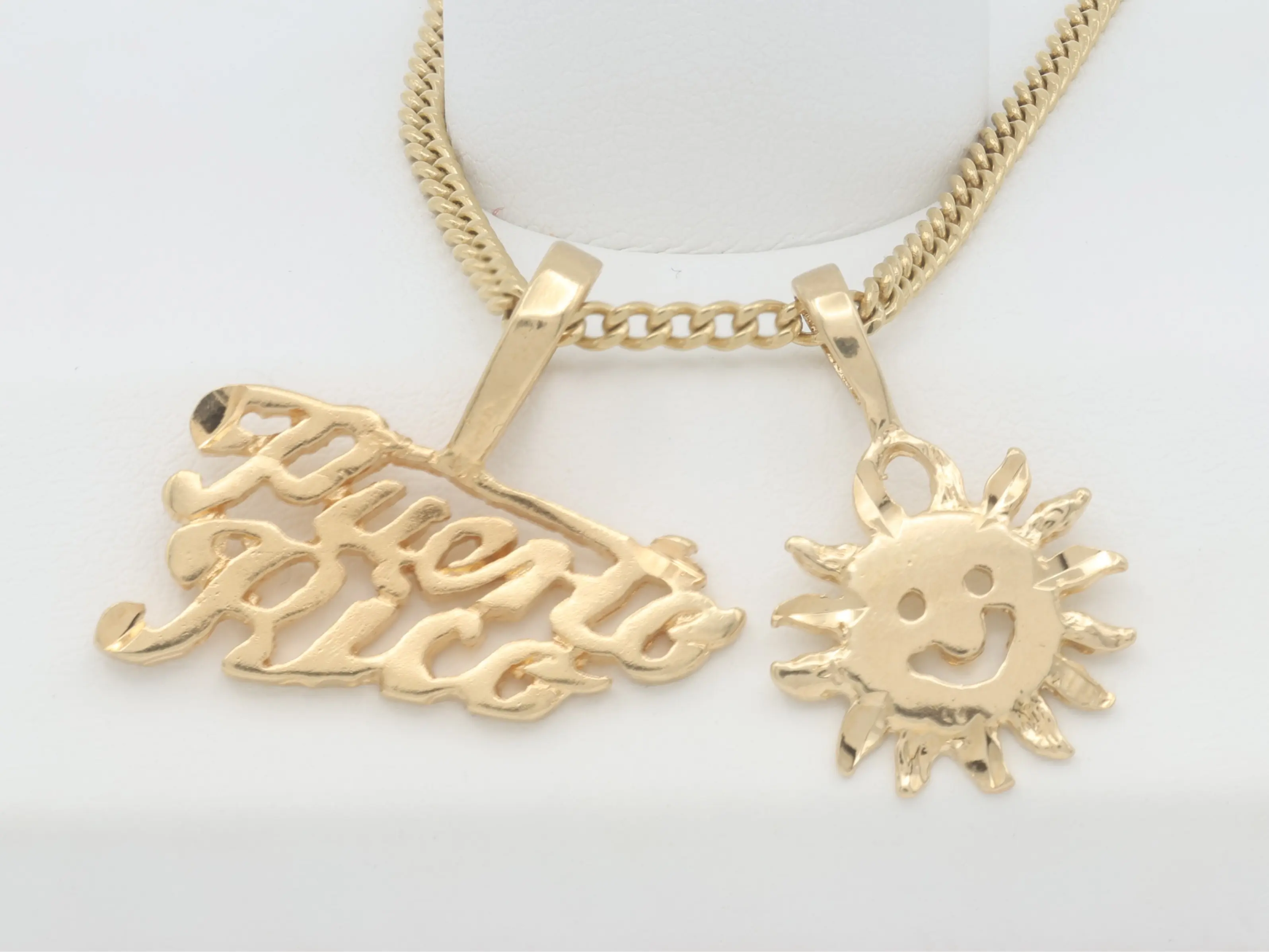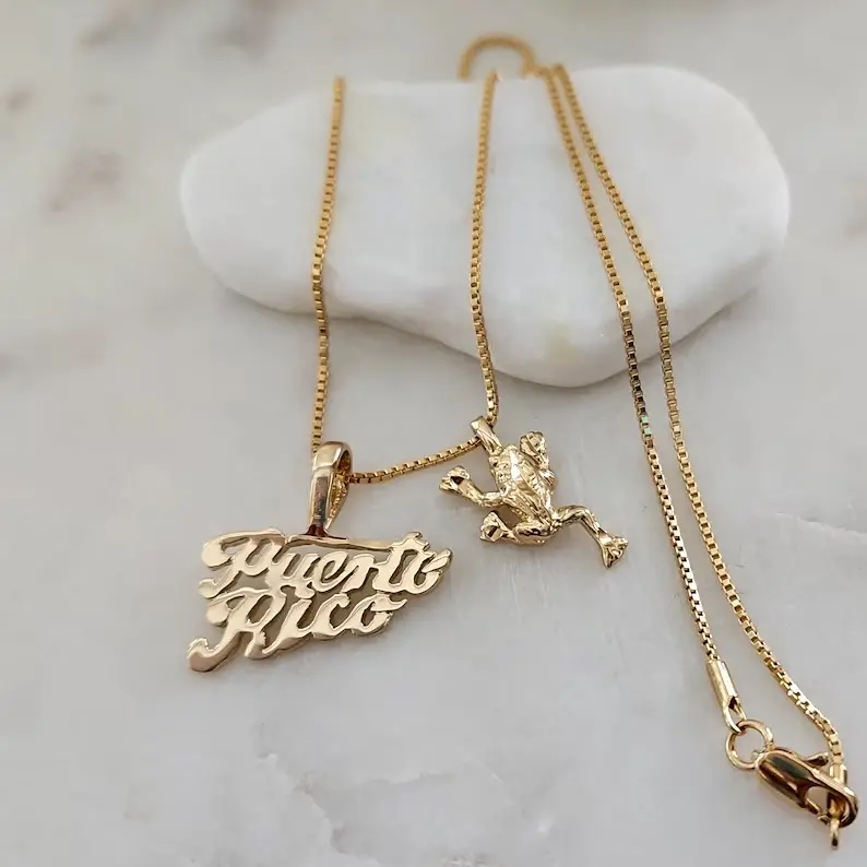 ✨ The Gold Puerto Rico Necklace is a stunning piece of jewelry for Puerto Rico enthusiasts. Choose from five designs: Palm Tree, Coqui, Seashell, Chanchla (Flip Flop), or Happy Sun. Each design is unique and eye-catching. Perfect for those who want to express their love for Puerto Rico.
