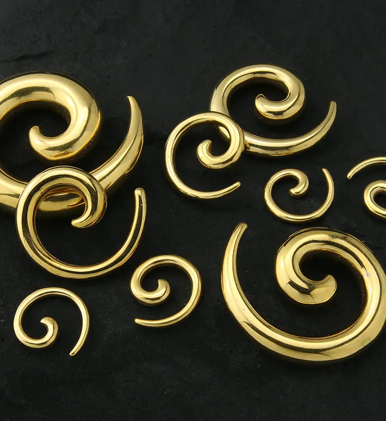 Add a twist of style with these Gold PVD Steel Spirals! Sold in pairs, they’re made from durable 316L stainless steel with a smooth, polished finish that shines bright. Available in sizes from 8G (3.2mm) up to 1/2" (12mm), these spirals are perfect for healed piercings - do not use them for stretching.