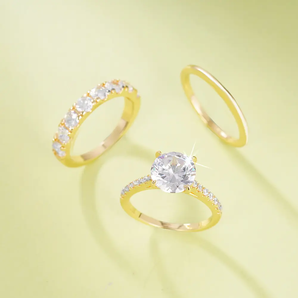 This set includes three stackable rings, perfect for engagement, wedding, or daily wear. The gold-plated synthetic moissanite adds elegance and sparkle. Ideal for gifting to mom or girlfriend. 🎁