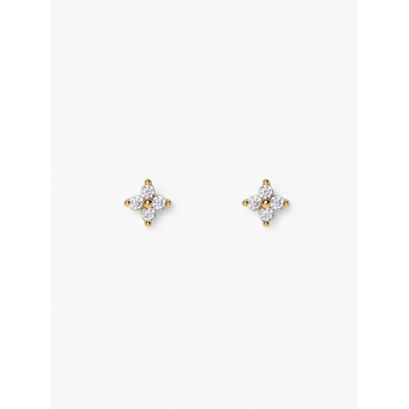 Explore enchanting elegance with our petite gold stud earrings, featuring a celestial design. Crafted in 14K Gold on recycled Sterling Silver and adorned with star-studded cubic zirconia, these earrings add a cute punctuation to any outfit. Enhance your style by pairing them with our Lucy necklace.
