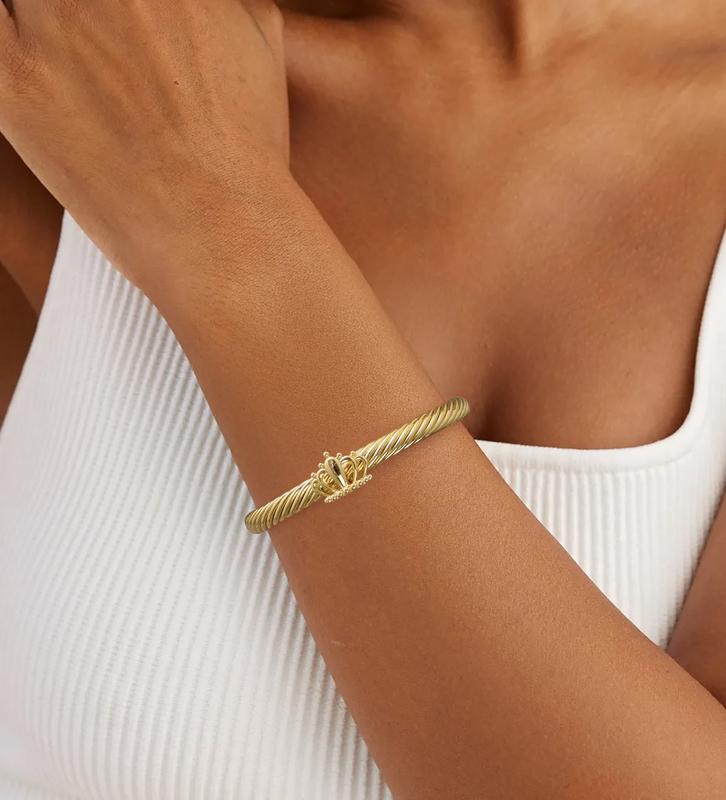 ·Material & Craftsmanship: Made with high - polished gold - tone metal, it has a mirror - like smooth surface that exudes luxury. The twisted rope pattern is formed by precise craftsmanship, with uniform and three - dimensional texture, simulating classic vintage knotting techniques, and it is both structurally stable and visually layered.