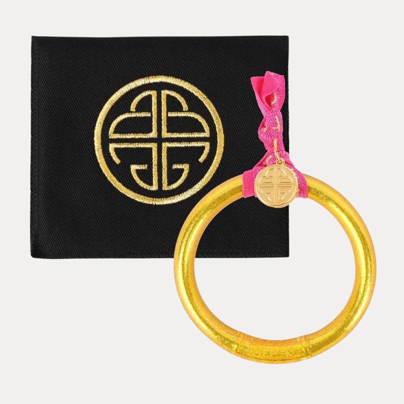 Are you a maximalist or a minimalist? Either way, you're bound to be divine! Our BuDhaGirl Tzubbie (pronounced "chubbie") Gold All Weather Bangle® embodies all the traits of an AWB: it's waterproof, soundless, weightless, and TSA-proof. This singular orb is designed for those seeking the pinnacle of statement pieces. Encapsulating our signature lush gold leaf within voluminous polyvinyl carbonate tubing, sealed with our distinctive Serenity prayer bead, envision setting your daily intentions with this exquisite bangle.