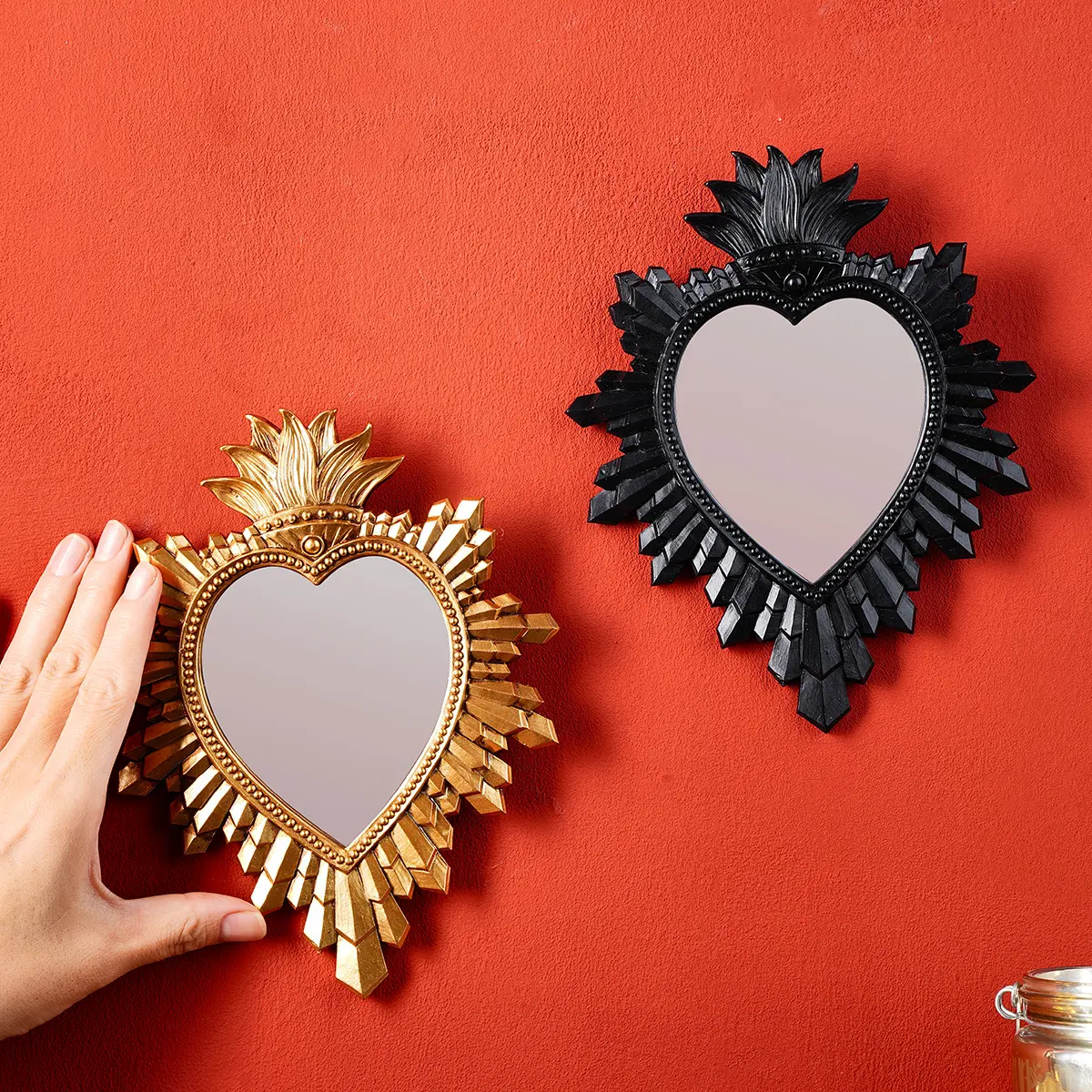 I absolutely love both the gold and the black flame heart mirrors. They look amazing together!