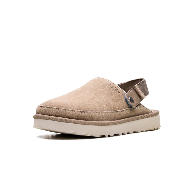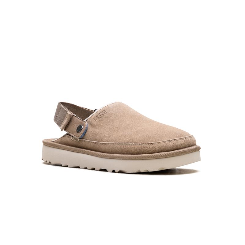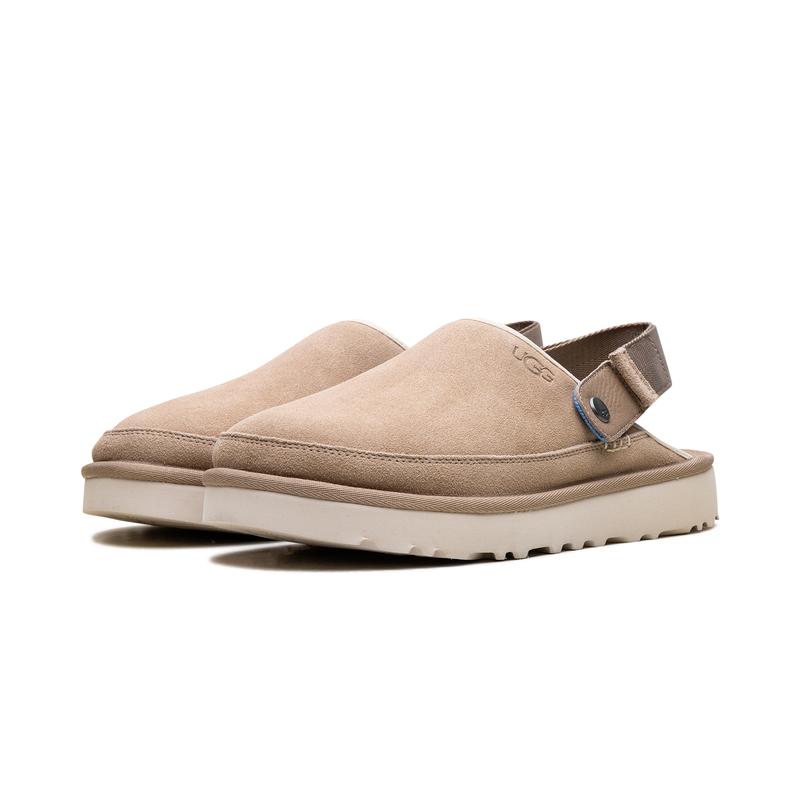 Step into effortless style and all-day comfort with the UGG Goldencoast Clog "Sand," your new versatile essential. Crafted from luxurious velvety suede, this slip-on boasts an ultra-lightweight Sugarcane EVA outsole, providing superior cushioning and earth-friendly support. The adjustable heel strap swivels, giving you a secure fit or an easy, open-back slide option. Embrace sustainable choices and classic UGG ease, perfect for pairing with anything from jeans to shorts for any casual occasion.