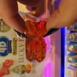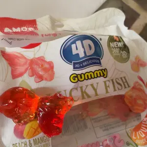 Quick delivery. Item ordered was as they said it would be. 1st time buying the 3d fish.These are peach 🍑 flavor & mango 🥭. So good. Made with real fruit juices . Thr sent a bonus gift for ordering. I got a squeeze dinosaur with candy in the bottom. I use it as a stress toy as the eyes pop out .