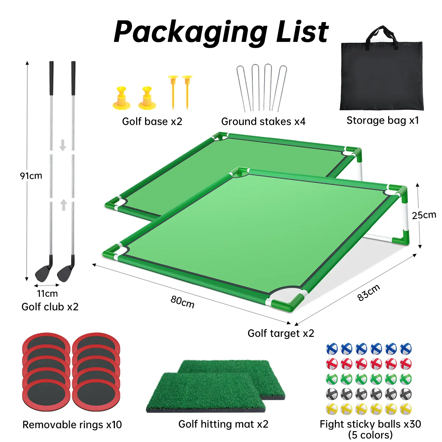 Seize every opportunity to break through in each swing. Our golf target game is your best partner for skill improvement. Includes four types of colorful velcro golf balls, ideal for 2 vs 2 team games or individual practice.