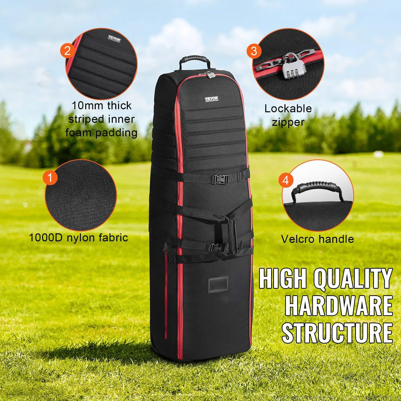 ·Premium Material: Made of weather-resistant 1000D nylon, this heavy duty golf travel bag offering excellent impact resistance and waterproof performance. The bag includes two large external side pockets with external zippers. These zippers are lockable, ideal for storing additional golf accessories or items of your choice. Internal and external safety straps are also provided to keep your clubs secure.