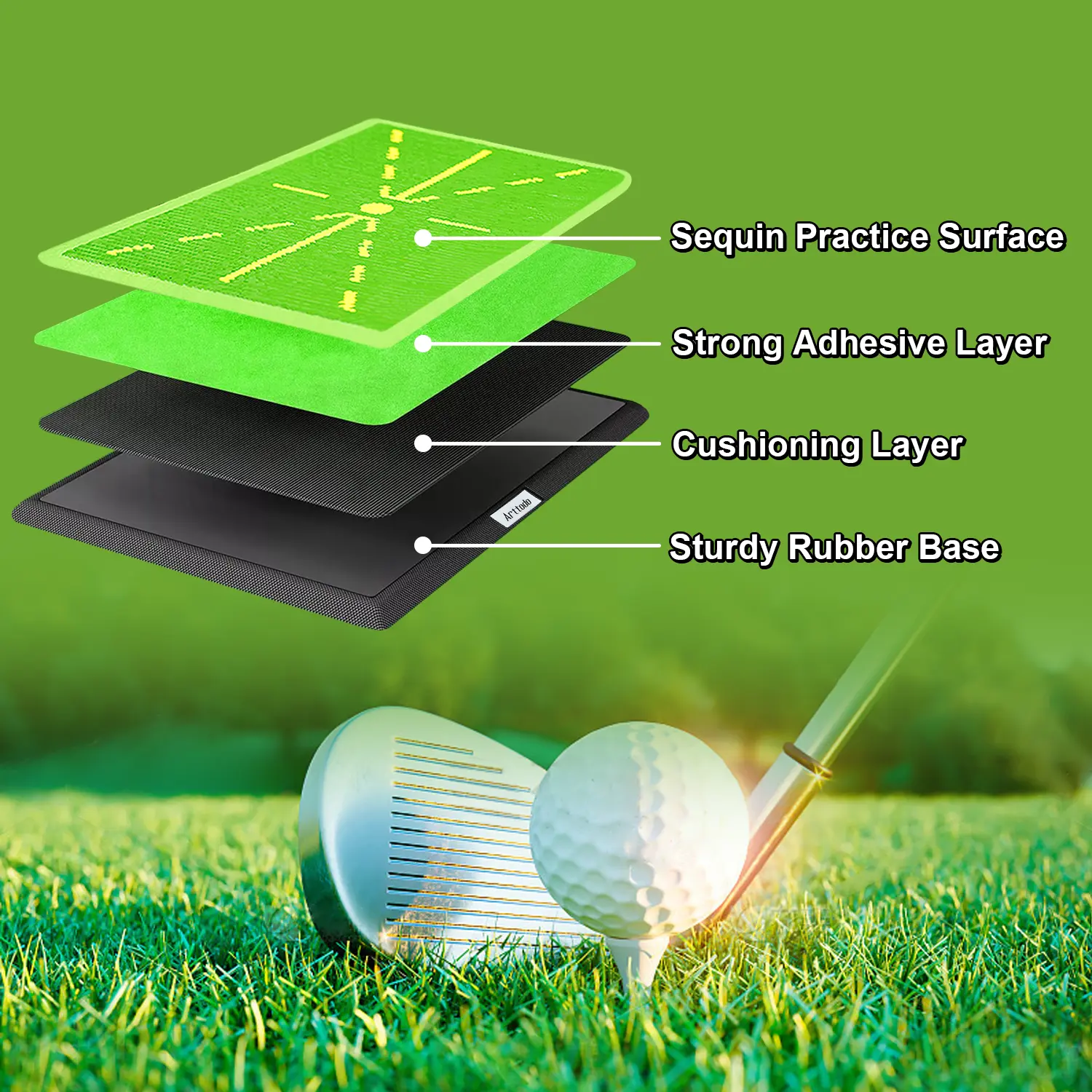 ·Premium durable sequins materials are applied in this golf practice mat, minimizing clubface wear.