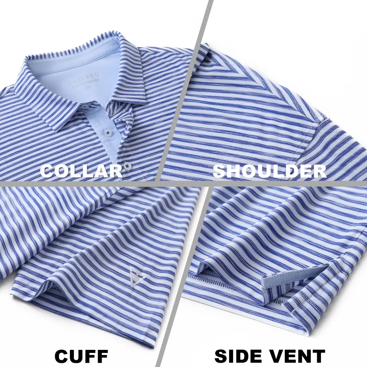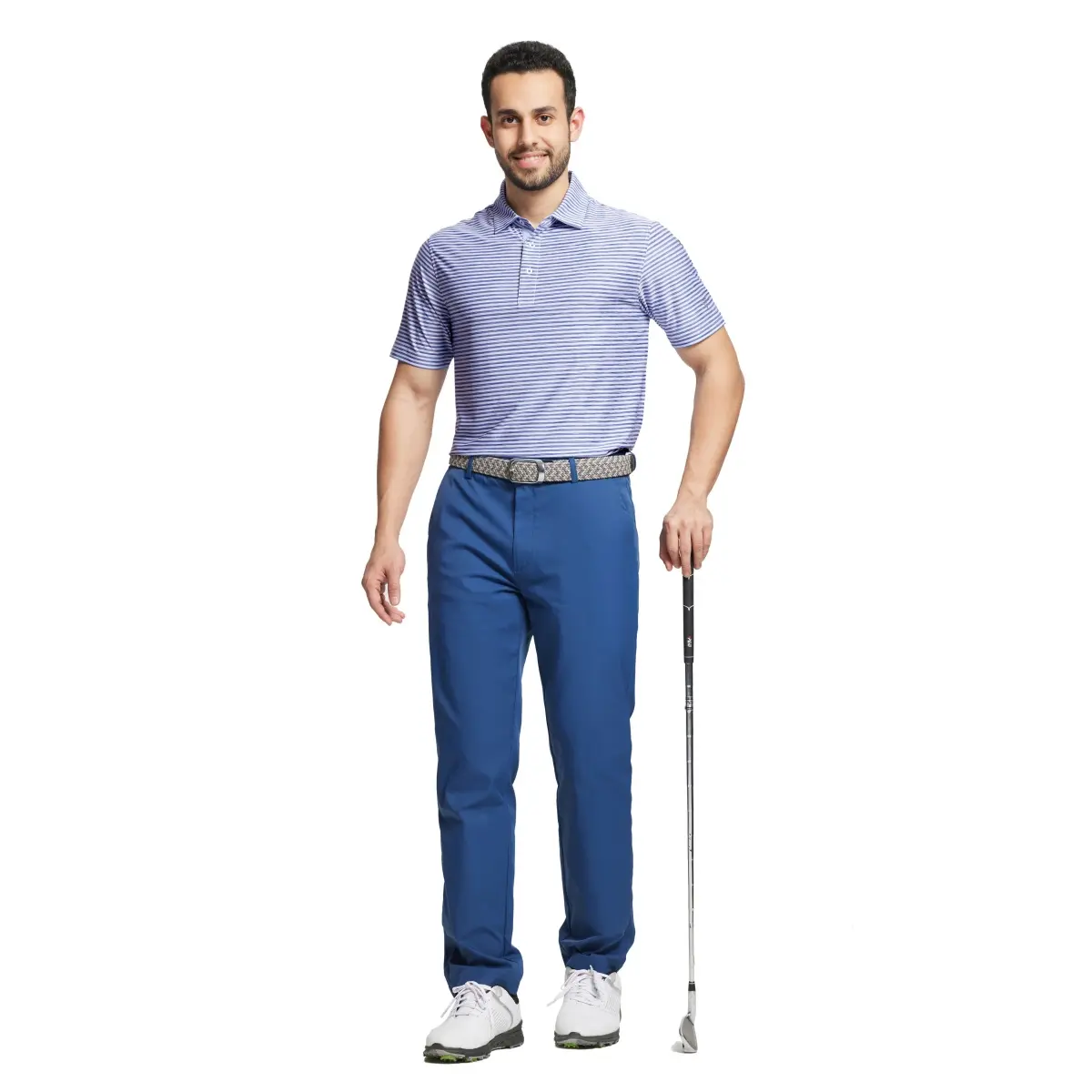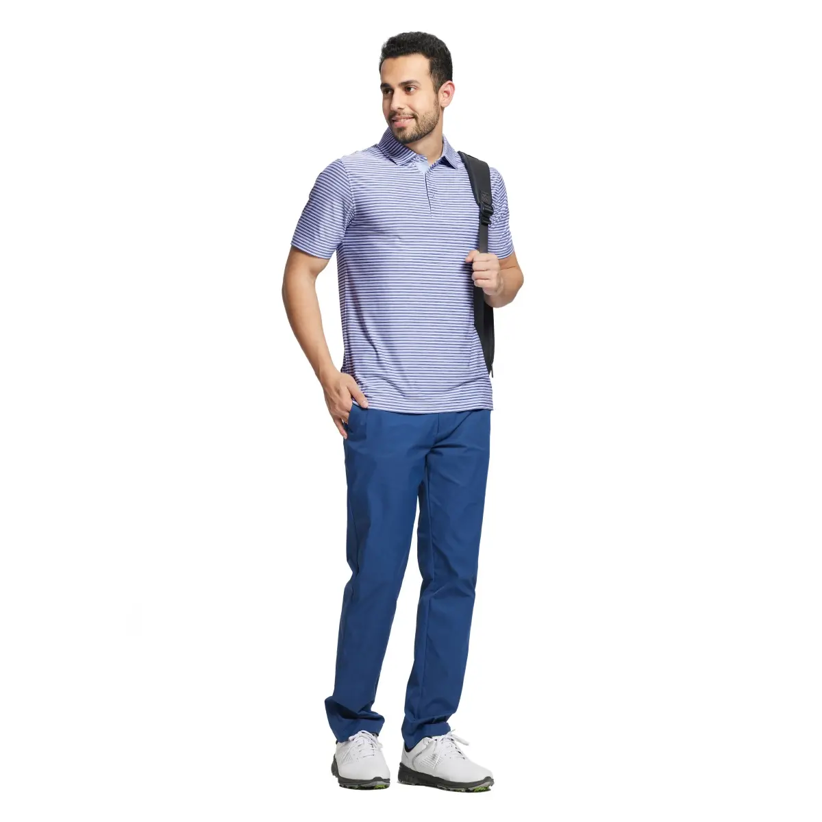 ·CHIC DESIGN: This golf shirts for men features specially structure of space dyed stripe and no curl collar, contrast woven fabric inside the collar and button placket add some highlights and unique charm for our polo shirt.