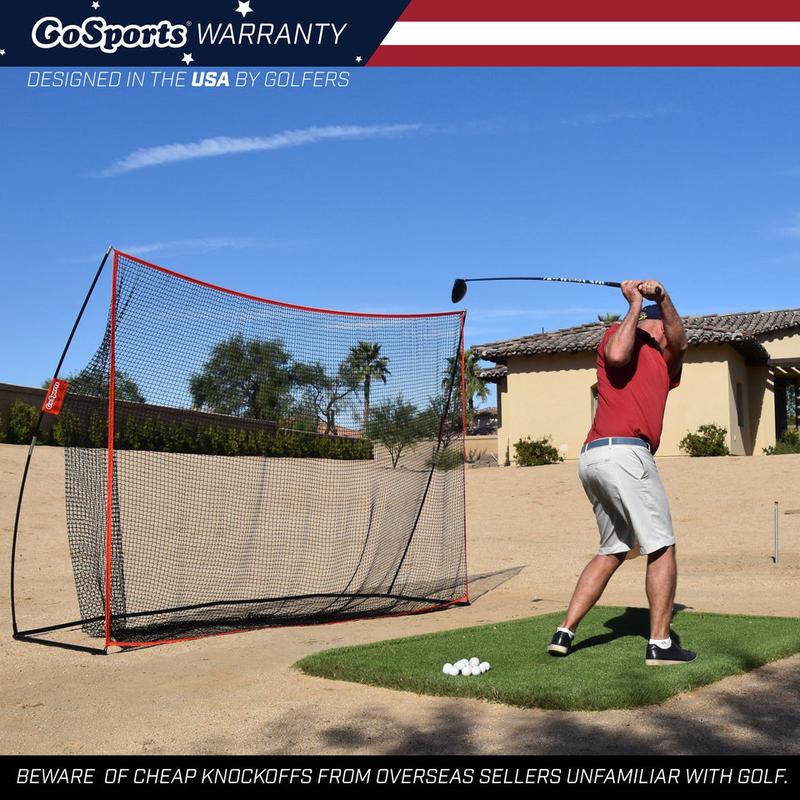 The GoSports 10 ft x 7 ft golf net was designed by golfers, for golfers to provide a must-have practice tool. For a variety of reasons, we can't always make it out to the range to work on our game, so unless you are Tiger Woods and have a course in your backyard, you need this product! That's because the hitting net allows golfers to practice full shots with real golf balls for the most realistic practice experience. The net is also very popular for use with launch monitors to really take your practice to the next level. The net can be used indoors or outdoors as long as you have a large enough space to safely swing a club. Beware of other golf equipment that looks similar, but are made by foreign companies who have never even played a real round of golf.