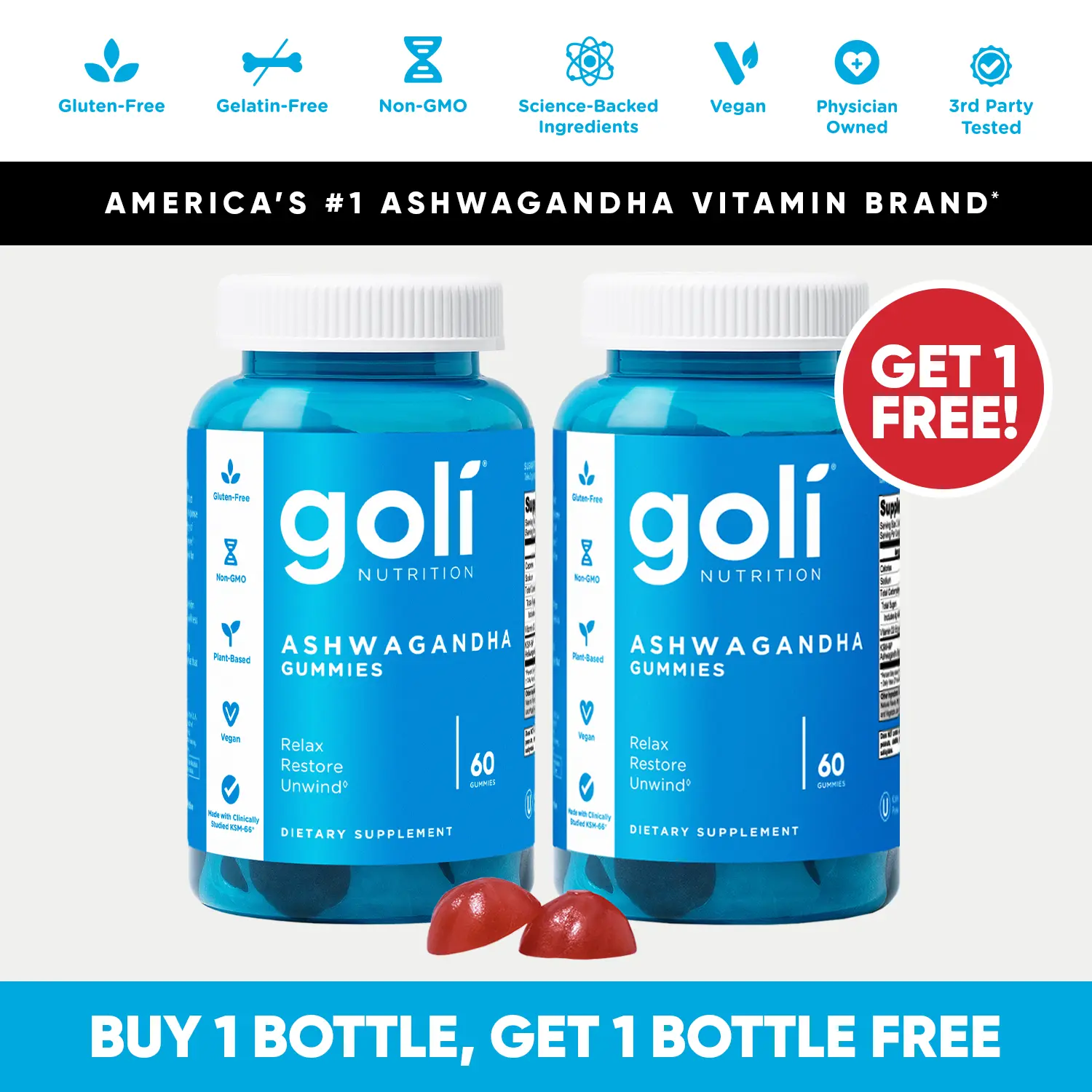 2 Bottles of Goli Ashwagandha & Vitamin D Gummy