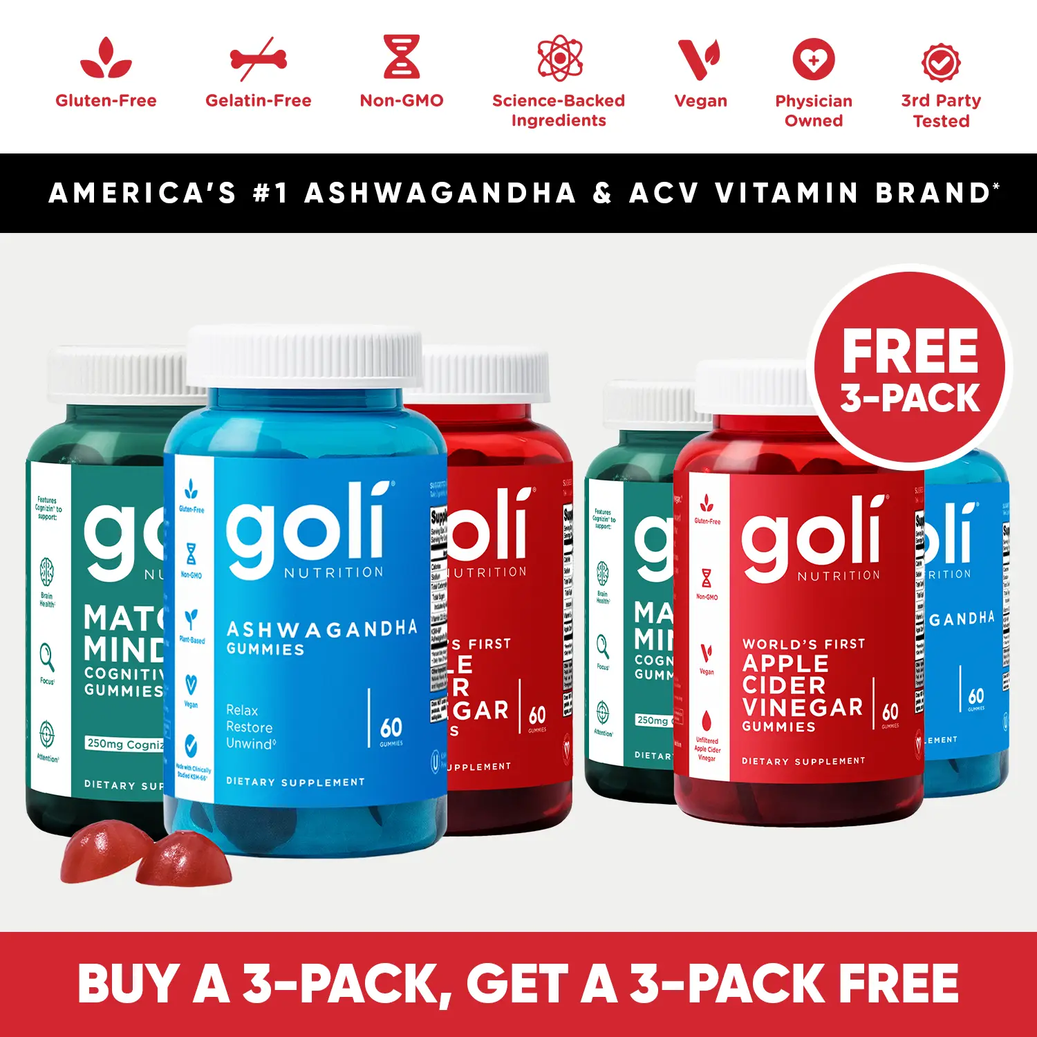I got a 6pack of Goli gummies the ACV are favorite second one is a aswagandha third one is Matcha has a peculiar flavor more like greens 03. They’re really good for you mine and your body The gummy’s are very soft and delicious easy to eat. I recommended.