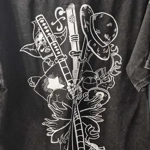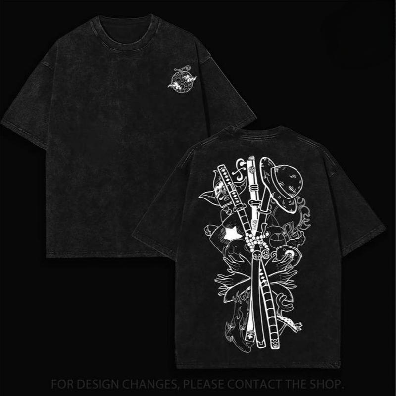 5. Gomu Gomu No Mi - One Piecee Anime Double Printed Vintage Washed Tee Unisex Oversize Anime Manga Washed Heavyweight Cotton T-shirt, Gift For Anime Fan, Anime Lover