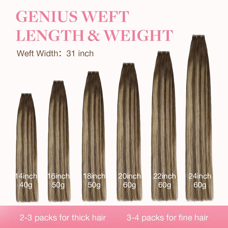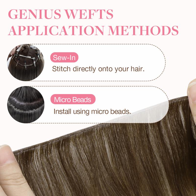 3.Genius Wefts vs Traditional Wefts: Combining the best of hand-tied and injected wefts, no return hair for no scalp irritation, matting. They're thinner, customizable in width, and can be secured via sewing, clips, or glue for a perfect fit.