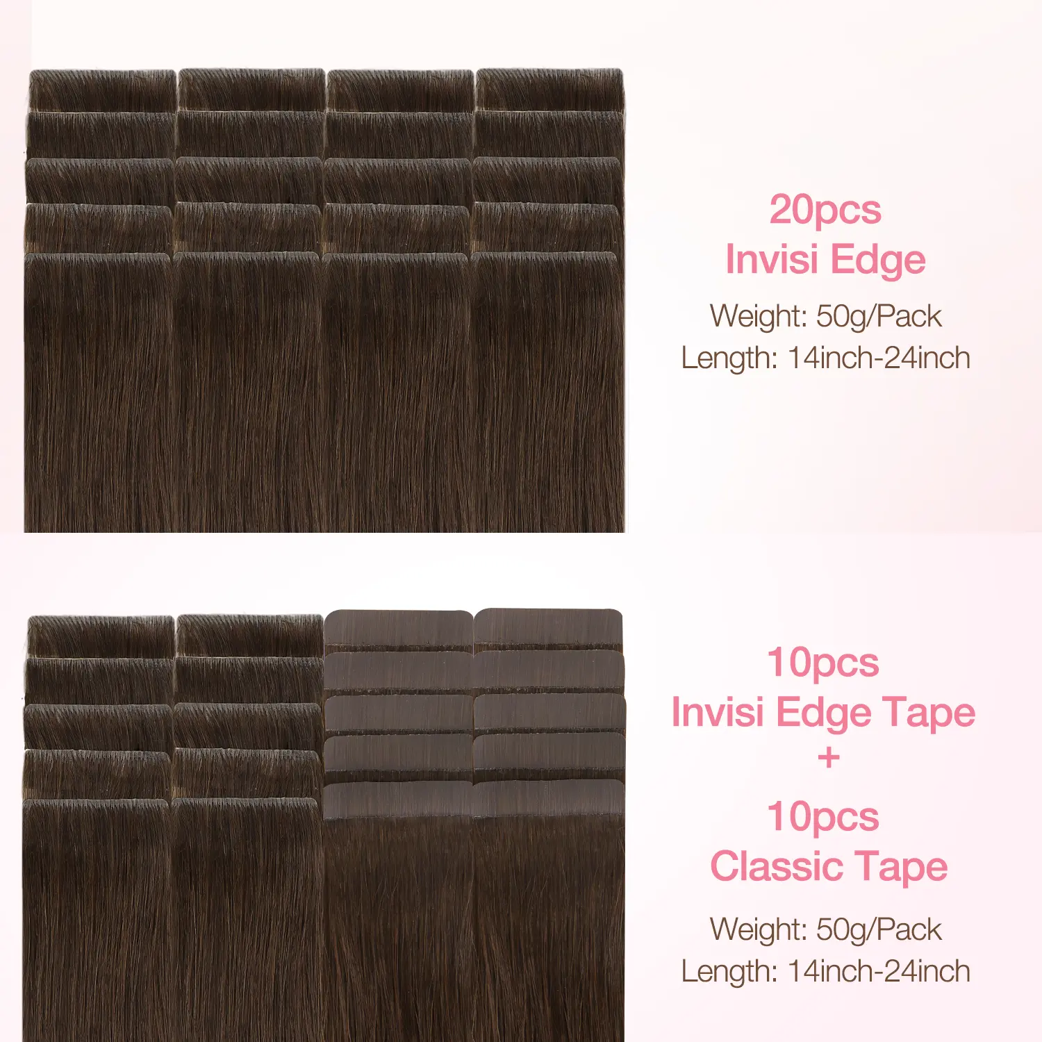 2-Dark Brown, 24inch-50g-20pcs
