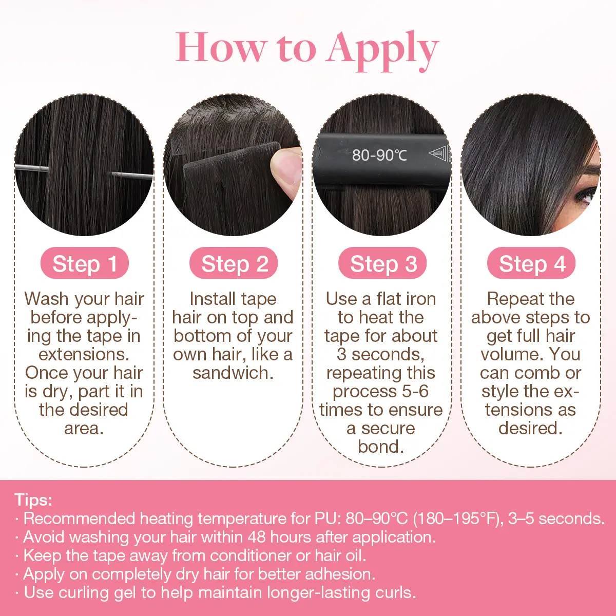 Super soft hair! Was able to heat style ! Installed with NO pre wash, and they were black and didn’t run into my platinum blonde hair!
