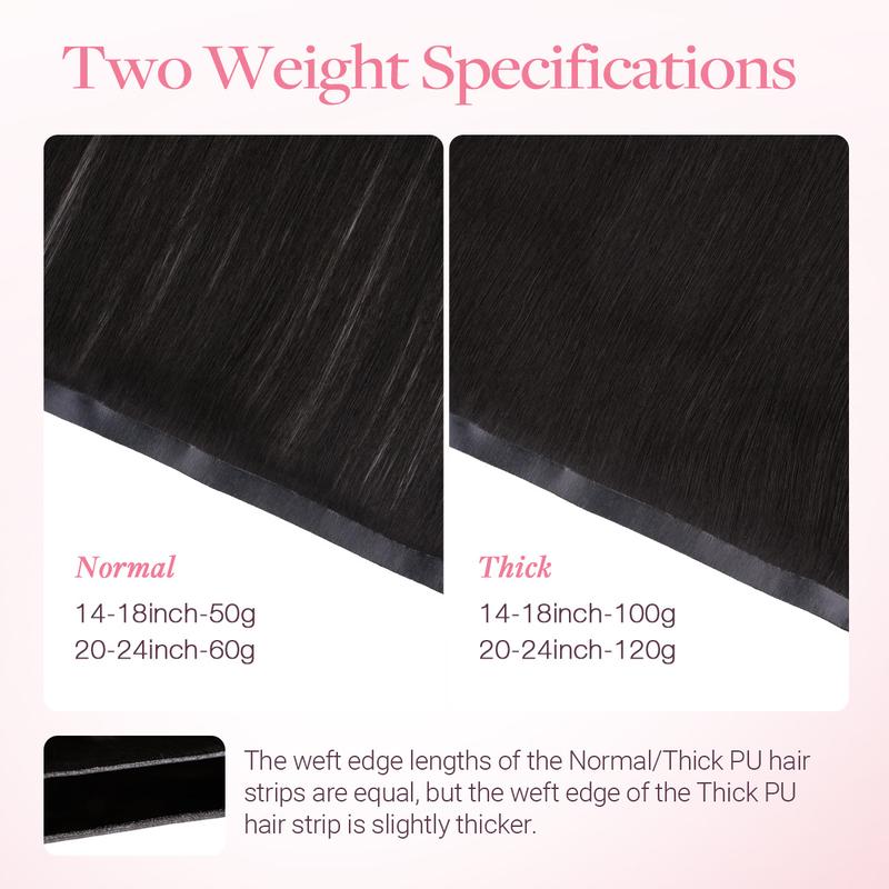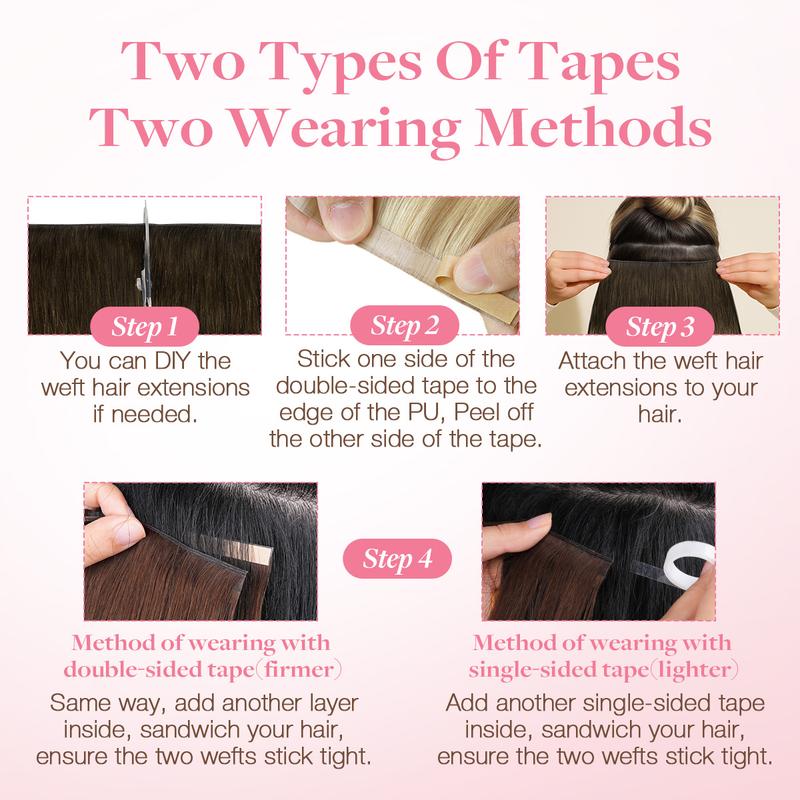 Easy to Use: Different from traditional hair extension pieces, our latest long hair extension pieces adopt a convenient PU adhesive layer design, with a unique "sandwich" wearing method. When used with our tape, they can be fixed instantly by pressing and pasting.