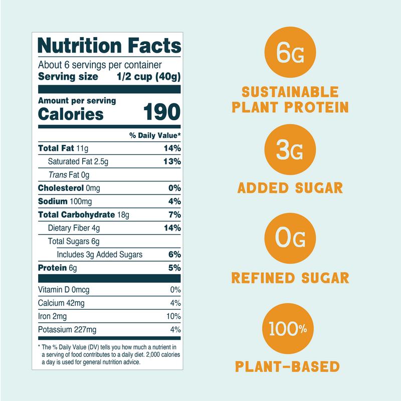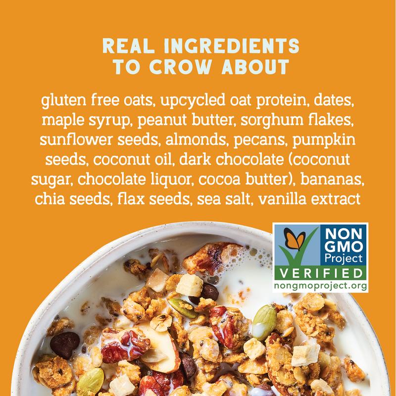 Ingredientsgluten free oats,upcycled oat protein,dates,maple syrup,peanut butter,sorghum flakes,sunflower seeds,almonds,pecans,pumpkin seeds,coconut oil,dark chocolate (coconut sugar,chocolate liquor,cocoa butter),bananas,chia seeds,flax seeds,sea salt,vanilla extract