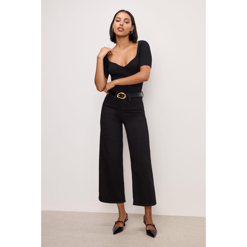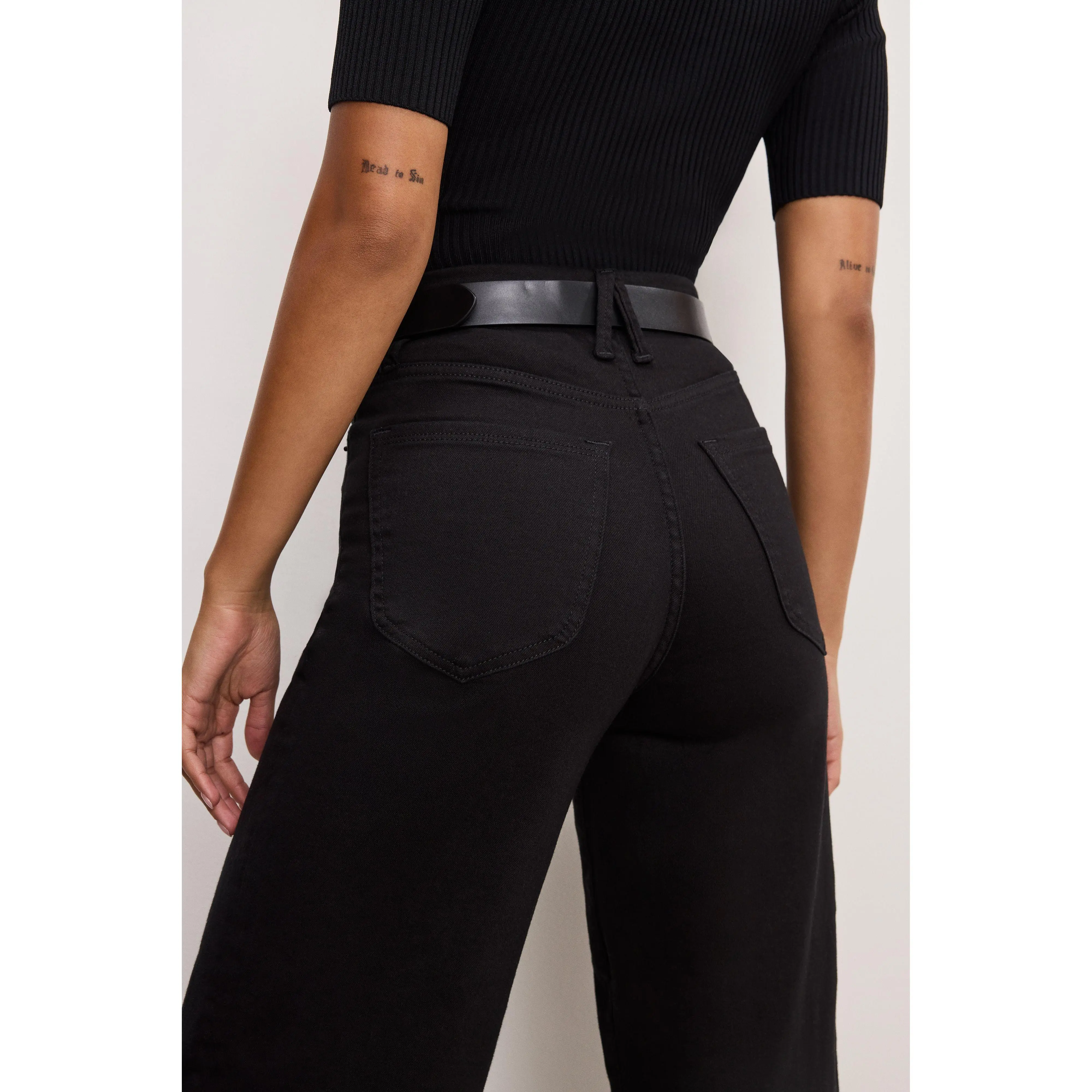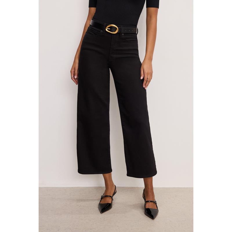 A sexy waist cinching style designed to enhance your natural silhouette with a high-rise and cropped wide loose legs. The Good Waist Cropped Palazzo Jeans are crafted from our comfort stretch denim, that has a classic denim look and feel, but with a little added stretch for comfort.