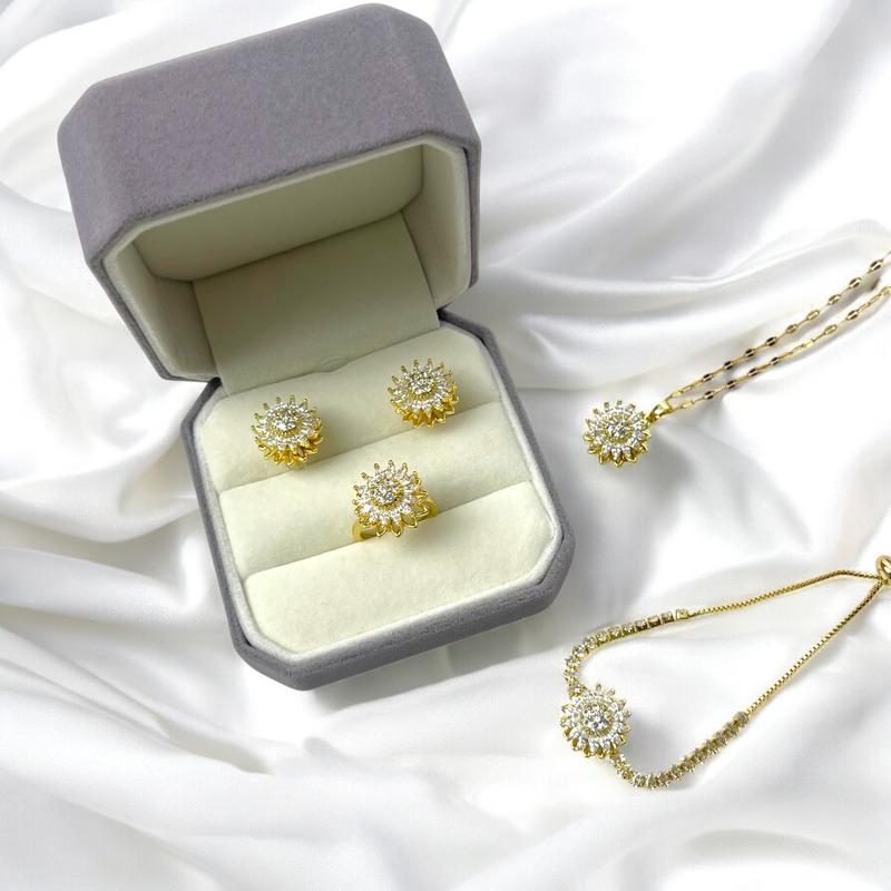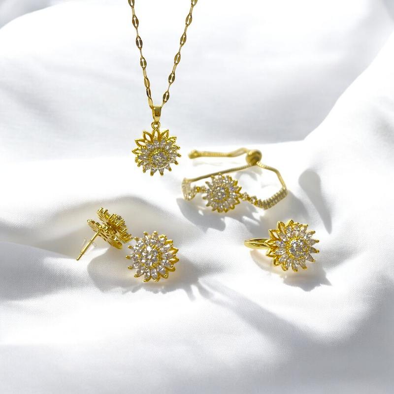 Celebrate positivity, inner strength, and timeless beauty with our complete Spinning Sunflower Jewelry Set. This elegant 4-piece collection includes a sparkling rotating ring, matching bracelet, delicate earrings, and a stunning necklace — each piece designed to inspire joy, calm your mind, and brighten every moment.
