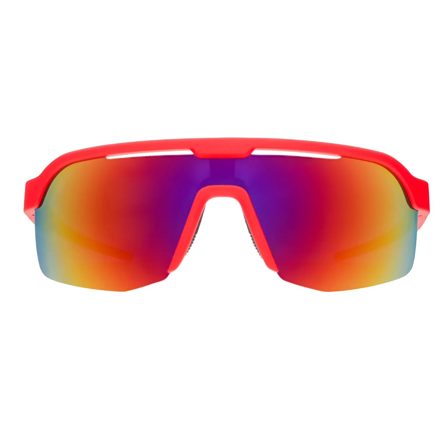 Residents of Dante's fiery inferno are doomed to suffer shin splints that burn like hell for all eternity. Don't worry, though. These red shield, half-rim frames w/ rose reflective lenses won't slip or bounce no matter how schweddy it is there.