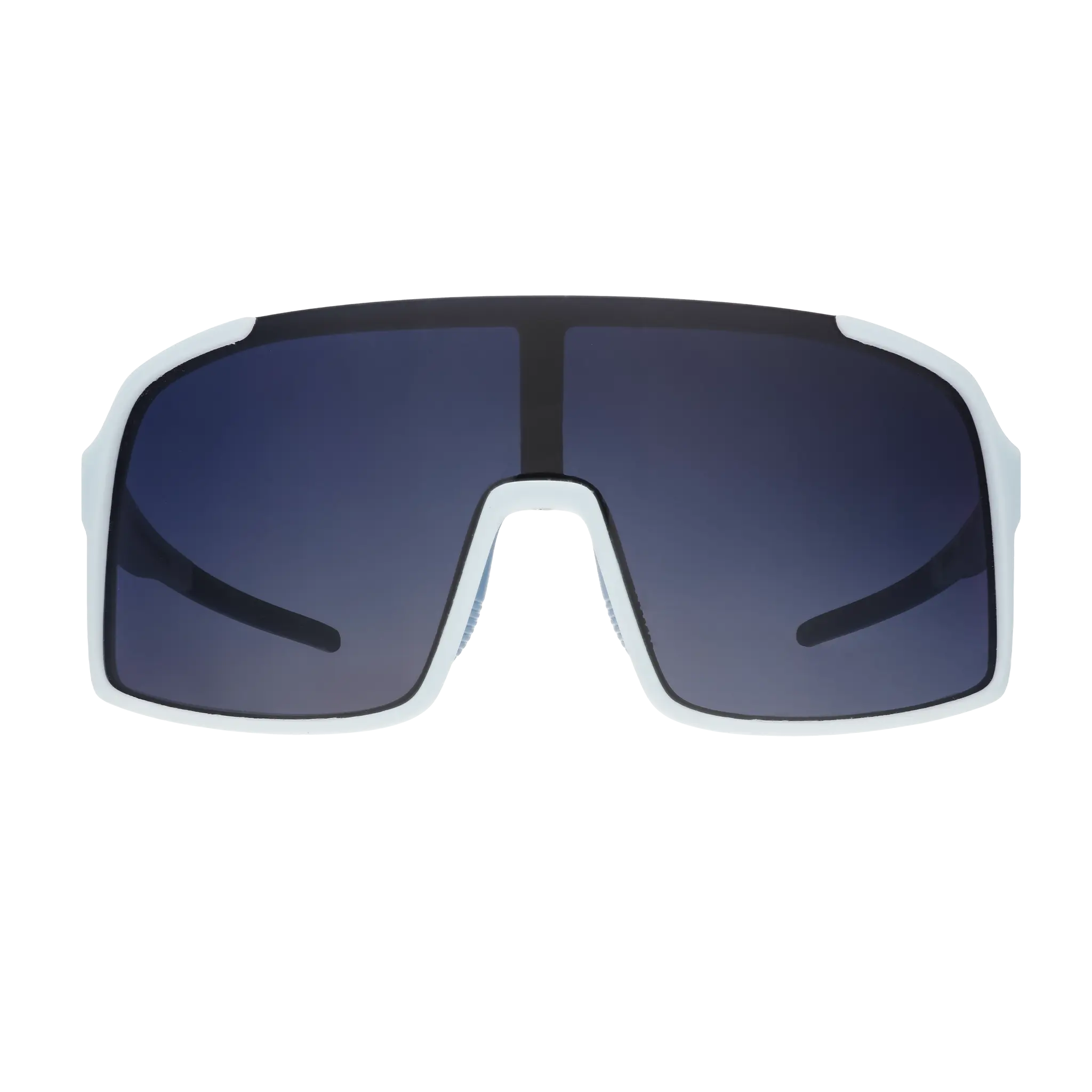 Semi-rimless, blue shield frames. Polarized gradient lenses reduce glare from the sun shining on your kidnapper's metallic exoskeleton. Won't slip or bounce while you desperately try to escape your cyborg captors. (P.S. Resistance is futile.)