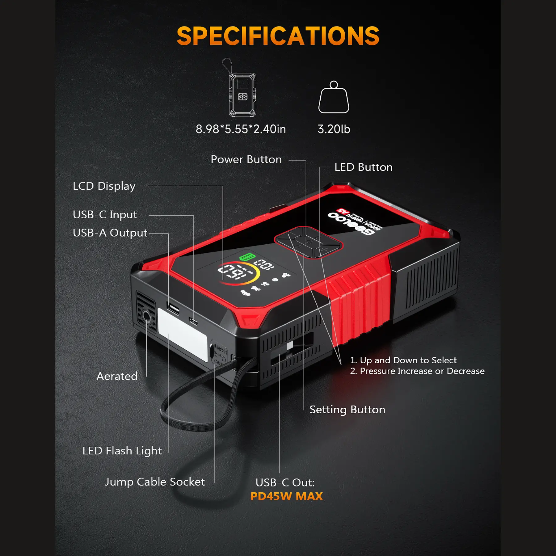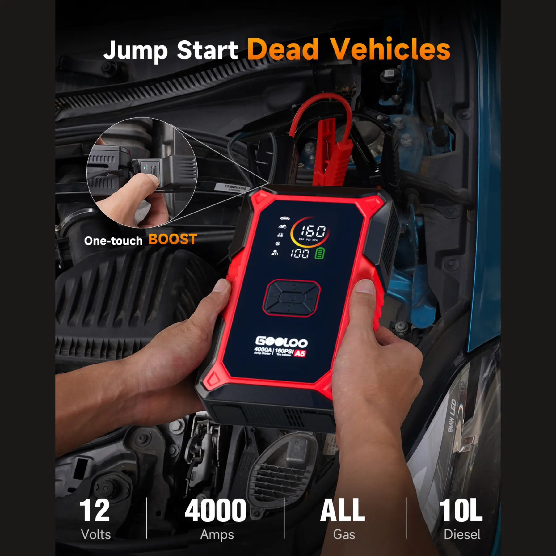 GOOLOO A5 Jump Starter with Air Compressor, 4000A Car Battery Jump Starter (All Gas/10.0L Diesel) with 160PSI Tire Inflator Auto-Off, 45W Output Power Bank, 12V Jump Box Car Jumper Starter PortableGOOLOO A5 Jump Starter with Air Compressor, 4000A Car Battery Jump Starter (All Gas/10.0L Diesel) with 160PSI Tire Inflator Auto-Off, 45W Output Power Bank, 12V Jump Box Car Jumper Starter PortableGOOLOO A5 Jump Starter with Air Compressor, 4000A Car Battery Jump Starter (All Gas/10.0L Diesel) with 160PSI Tire Inflator Auto-Off, 45W Output Power Bank, 12V Jump Box Car Jumper Starter PortableGOOLOO A5 Jump Starter with Air Compressor, 4000A Car Battery Jump Starter (All Gas/10.0L Diesel) with 160PSI Tire Inflator Auto-Off, 45W Output Power Bank, 12V Jump Box Car Jumper Starter PortableGOOLOO A5 Jump Starter with Air Compressor, 4000A Car Battery Jump Starter (All Gas/10.0L Diesel) with 160PSI Tire Inflator Auto-Off, 45W Output Power Bank, 12V Jump Box Car Jumper Starter PortableGOOLOO A5 Jump Starter with Air Compressor, 4000A Car Battery Jump Starter (All Gas/10.0L Diesel) with 160PSI Tire Inflator Auto-Off, 45W Output Power Bank, 12V Jump Box Car Jumper Starter PortableGOOLOO A5 Jump Starter with Air Compressor, 4000A Car Battery Jump Starter (All Gas/10.0L Diesel) with 160PSI Tire Inflator Auto-Off, 45W Output Power Bank, 12V Jump Box Car Jumper Starter PortableGOOLOO A5 Jump Starter with Air Compressor, 4000A Car Battery Jump Starter (All Gas/10.0L Diesel) with 160PSI Tire Inflator Auto-Off, 45W Output Power Bank, 12V Jump Box Car Jumper Starter PortableGOOLOO A5 Jump Starter with Air Compressor, 4000A Car Battery Jump Starter (All Gas/10.0L Diesel) with 160PSI Tire Inflator Auto-Off, 45W Output Power Bank, 12V Jump Box Car Jumper Starter Portable