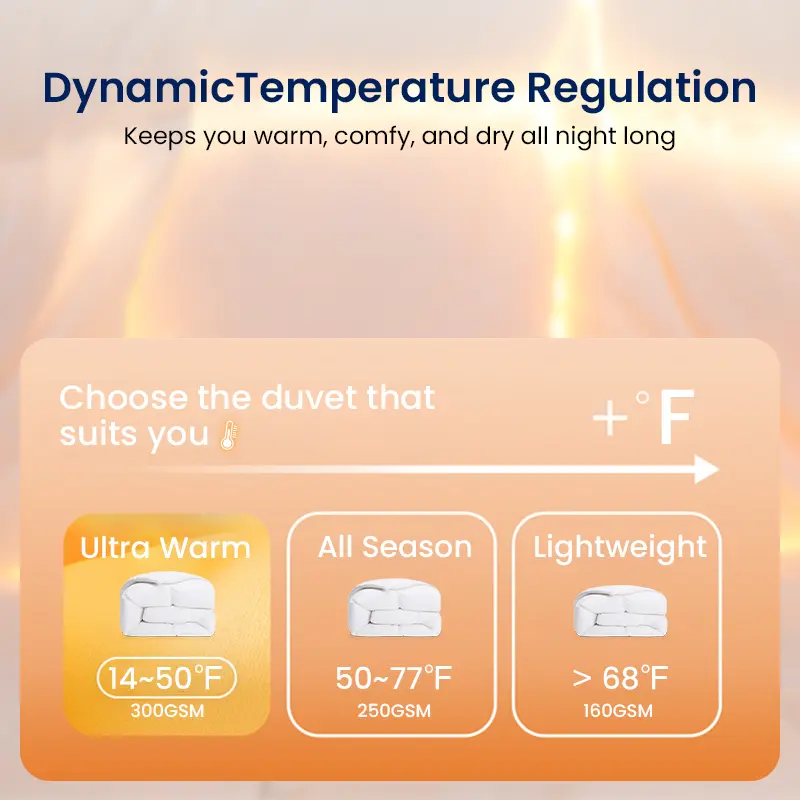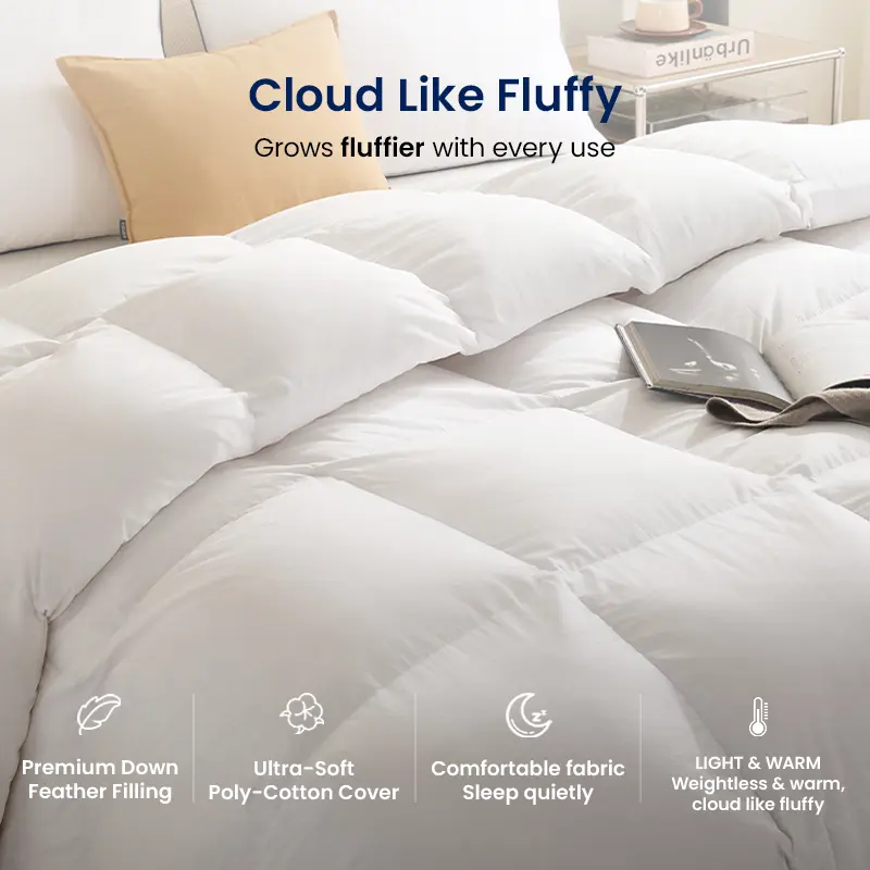 The all-season duvet is perfect year-round—light and breathable in summer, warm in winter. High-quality, hypoallergenic, and easy to maintain. Stays fluffy and stylish. Highly recommend!