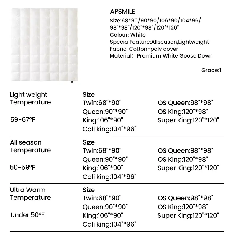 Super King120"*120", All Season(250GSM)